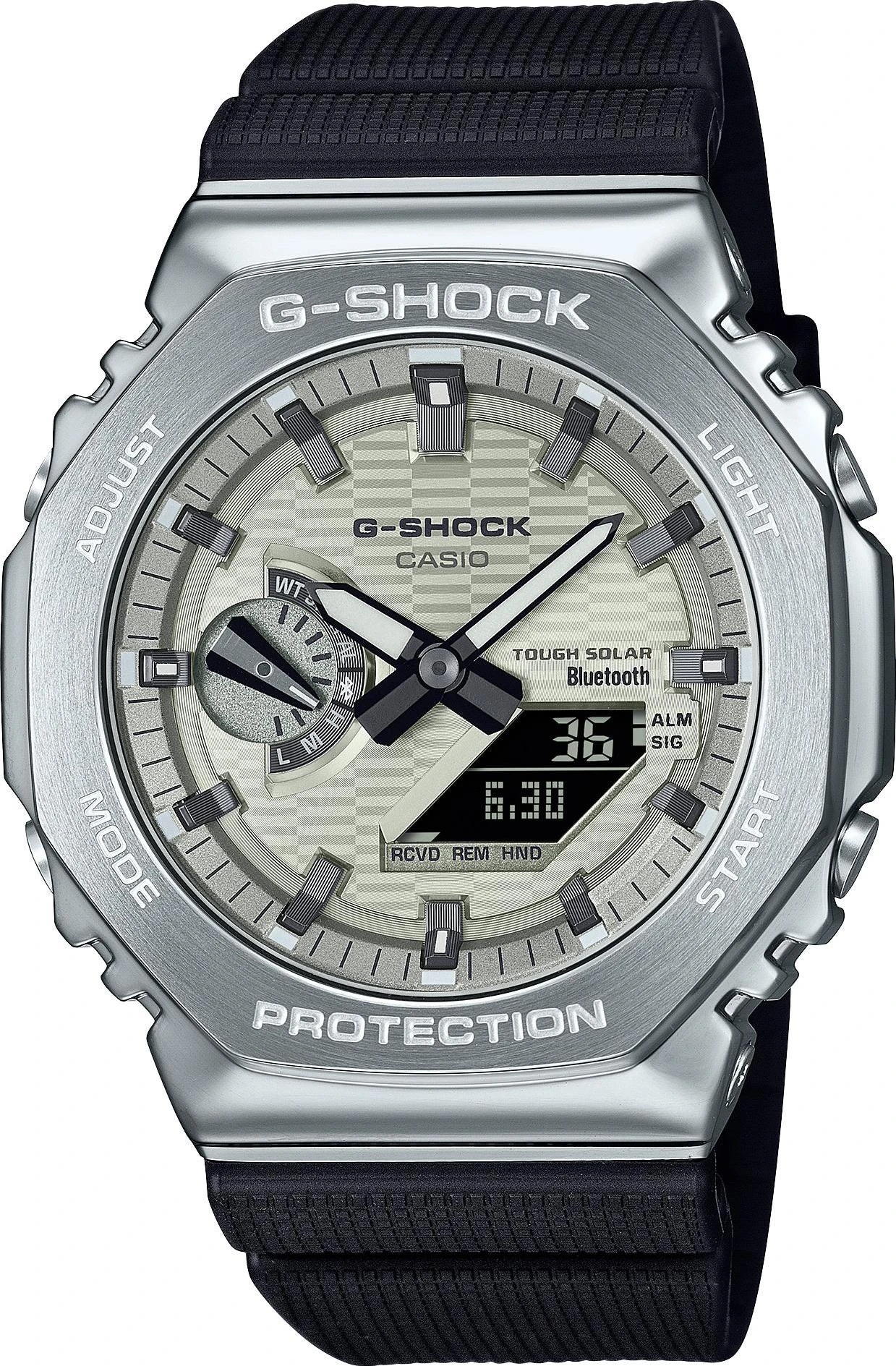 Модели GBM-2100 получили технологичный модуль: в часах доступна синхронизация времени со смартфоном и легкая настройка часов через Bluetooth, а также улучшенная и еще более эффективная технология Tough Solar — питание часов от солнечного или иного источника света, что не потребует замены батарейки в часах в ближайшее десятилетие.