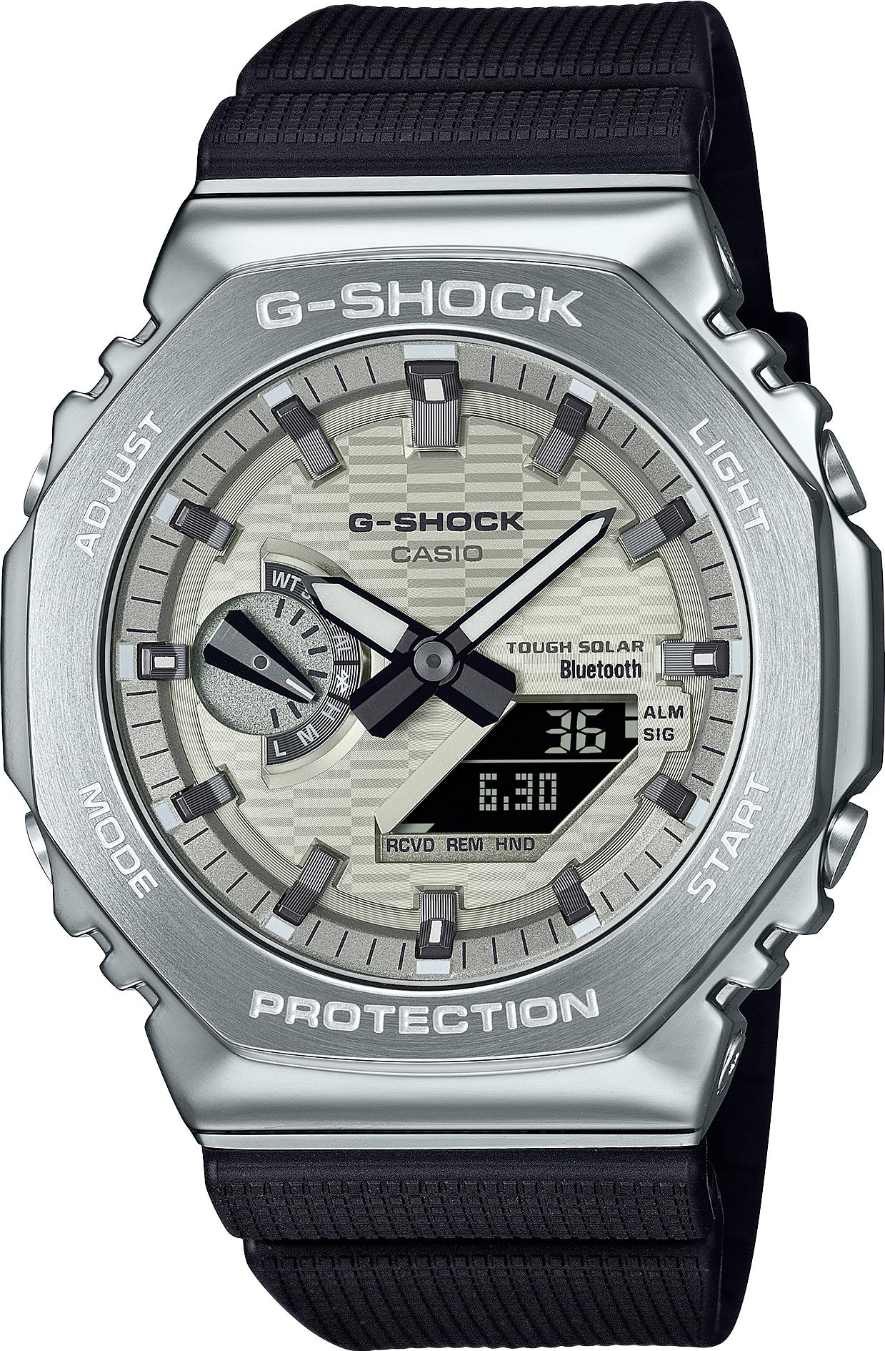 Модели GBM-2100 получили технологичный модуль: в часах доступна синхронизация времени со смартфоном и легкая настройка часов через Bluetooth, а также улучшенная и еще более эффективная технология Tough Solar — питание часов от солнечного или иного источника света, что не потребует замены батарейки в часах в ближайшее десятилетие.<br />