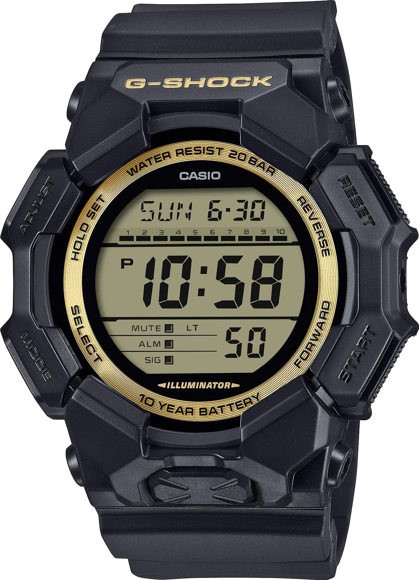 Лимитированный релиз второй половины 2025 года из цифровой серии G-SHOCK GD-010 в крупном брутальном черном матовом корпусе с деталями золотого цвета. Модели серии GD-010 оснащены технологией Carbon Core Guard: модуль часов защищает 2 слоя корпуса, внешний полимерный и внутренний легкий и сверхпрочный с углеродным армированием, а крупный эргономичный циферблат покрыт закаленным минеральным стеклом.