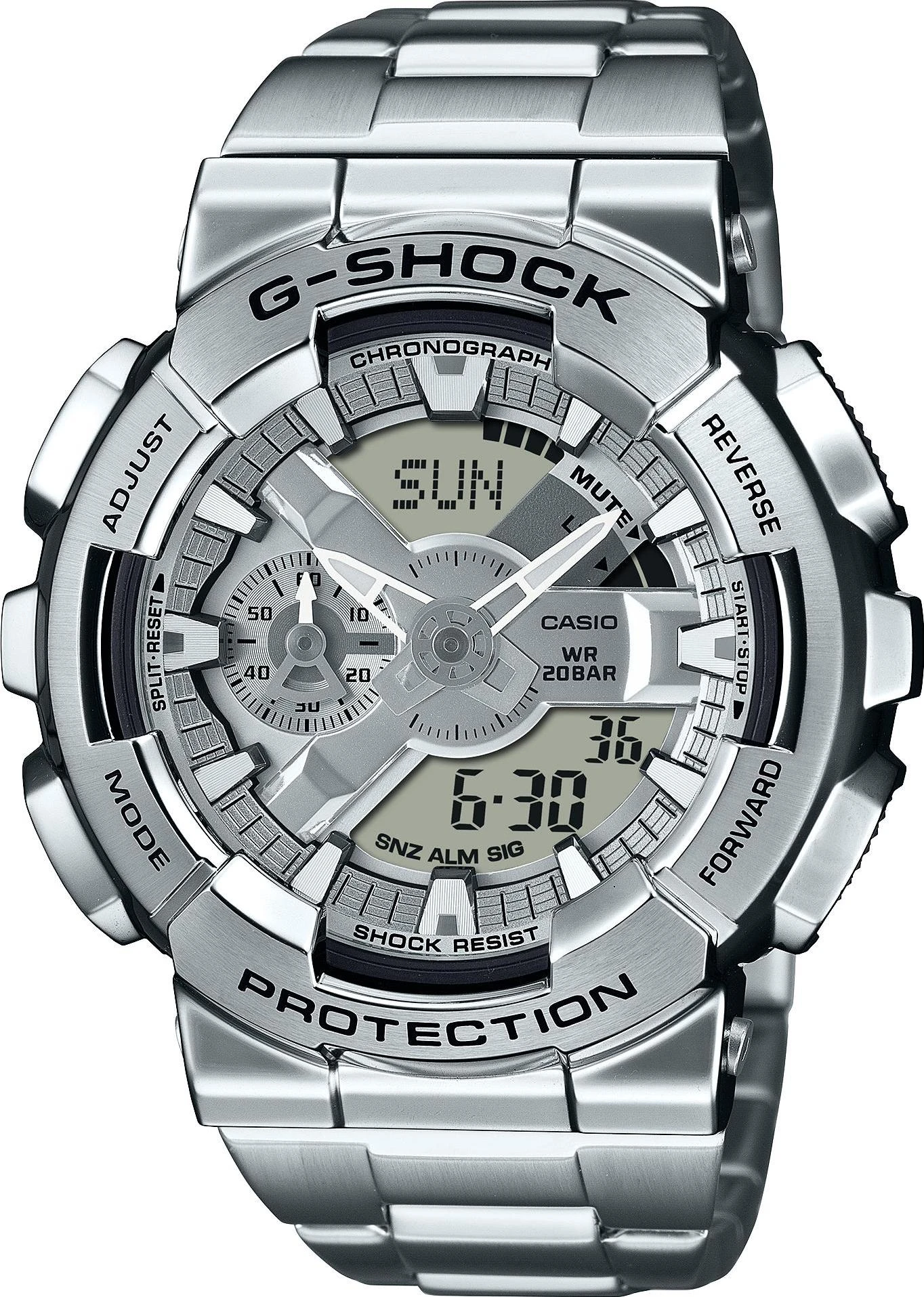 Мужские наручные часы Casio G-Shock GM-110D-8A. Точный кварцевый механизм. Браслет из нержавеющей стали. Отображение текущего времени в основных городах и конкретных областях по всему миру. Ударопрочная конструкция часов защищает от ударов и вибрации. Функция будильника. Функция таймера. Таймеры обратного отсчета напомнят Вам о текущих или особенных событиях, издав звуковой сигнал в установленное время. Ежечасный сигнал. После настройки автоматический календарь всегда отображает точную дату. Отображение времени возможно в 12-часовом или 24-часовом формате. Аккумулятор обеспечивает часы достаточным питанием приблизительно на 3 года. Корпус изготовлен из высококачественной нержавеющей стали 316L с высокими антикоррозийными свойствами. Прочное, устойчивое к царапинам минеральное стекло защищает часы от повреждений. На циферблате отображается текущее число, месяц и день недели. Часы являются водонепроницаемыми до 20 Бар. Цвет циферблата: Серебристый. Цвет корпуса: Серый. Цвет корпуса: Серебристый. Светодиодная подсветка. Толщина: 19.9000 мм. Гарантия: 2 года.