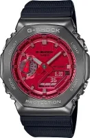 Мужские кварцевые часы из серии G-Shock. Комбинированный круглый корпус из нержавеющей стали и пластика. Красный аналого-цифровой циферблат. Минеральное стекло. Водозащита 200 м. Пластиковый черный ремешок с системой быстрой замены. Простая пряжка.