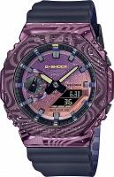 Мужские наручные часы Casio G-Shock GM-2100MWG-1A. Точный кварцевый механизм с аналого-цифровой индикацией. Корпус изготовлен из высококачественной нержавеющей стали 316L с высокими антикоррозийными свойствами. На циферблате отображается текущее число, месяц и день недели. Ударопрочная конструкция часов защищает от ударов и вибрации. Функция хронографа. Функция таймера. Таймеры обратного отсчета напомнят Вам о текущих или особенных событиях, издав звуковой сигнал в установленное время. Функция будильника. Аккумулятор обеспечивает часы достаточным питанием приблизительно на 3 года. Отображение текущего времени в основных городах и конкретных областях по всему миру. После настройки автоматический календарь всегда отображает точную дату. Отображение времени возможно в 12-часовом или 24-часовом формате. Полимерный ремешок. Натуральный полимерный материал является идеальным для изготовления ремешка благодаря своей чрезвычайной прочности и гибкости. Прочное, устойчивое к царапинам минеральное стекло защищает часы от повреждений. Часы являются водонепроницаемыми до 20 Бар. Цвет корпуса: Фиолетовый. Цвет циферблата: Фиолетовый. Ширина (с заводной головкой): 49мм. Толщина: 12мм. Гарантия: 2 года.
