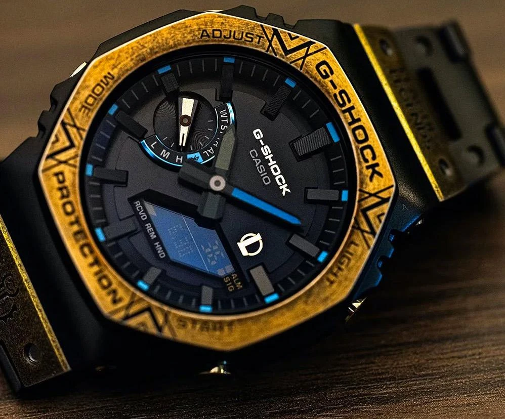 Мужские наручные часы Casio G-Shock GM-B2100LL-1A. Точный кварцевый механизм с аналого-цифровой индикацией. Корпус изготовлен из высококачественной нержавеющей стали 316L с высокими антикоррозийными свойствами. Светодиодная подсветка. На циферблате отображается текущее число, месяц и день недели. Ударопрочная конструкция часов защищает от ударов и вибрации. Солнечная батарейка. Солнечная подзаряжающаяся батарейка обеспечивает питание часов для работы. Функция Bluetooth позволяет удобно отображать все метрики с часов на экране смартфона, а также выводить на часы уведомления о входящих звонках, сообщениях и имейлах. Функция таймера. Таймеры обратного отсчета напомнят Вам о текущих или особенных событиях, издав звуковой сигнал в установленное время. Для подсветки дисплея используется светодиод, а так же имеет функцию автоматического включения подсветки, если Вы наклоните часы к своему лицу. Функция будильника. Функция перемещения стрелок. Нажатие на кнопку обеспечит перемещение стрелок в такое положение, которое позволит Вам легко считать информацию с маленьких цифровых дисплеев – например, дату или показатели секундомера. Отображение текущего времени в основных городах и конкретных областях по всему миру. После настройки автоматический календарь всегда отображает точную дату. Отображение времени возможно в 12-часовом или 24-часовом формате. Браслет из нержавеющей стали. Прочное, устойчивое к царапинам минеральное стекло защищает часы от повреждений. Часы являются водонепроницаемыми до 20 Бар. Цвет корпуса: Желтое золото. Цвет циферблата: Бежевый. Ширина (с заводной головкой): 50мм. Толщина: 13мм. Гарантия: 2 года.
