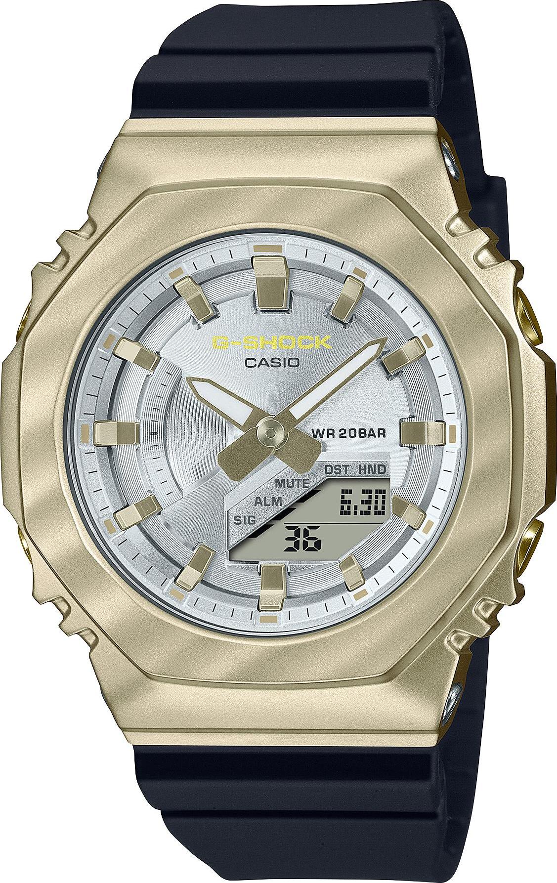 Женские наручные часы Casio G-Shock GM-S2100BC-1A. Точный кварцевый механизм с аналого-цифровой индикацией. Полимерный ремешок. Натуральный полимерный материал является идеальным для изготовления ремешка благодаря своей чрезвычайной прочности и гибкости. После настройки автоматический календарь всегда отображает точную дату. Для подсветки дисплея используется светодиод, а так же имеет функцию автоматического включения подсветки, если Вы наклоните часы к своему лицу. Функция будильника. Ежечасный сигнал. Функция хронографа. Отображение текущего времени в основных городах и конкретных областях по всему миру. Функция перемещения стрелок. Нажатие на кнопку обеспечит перемещение стрелок в такое положение, которое позволит Вам легко считать информацию с маленьких цифровых дисплеев – например, дату или показатели секундомера. Функция таймера. Таймеры обратного отсчета напомнят Вам о текущих или особенных событиях, издав звуковой сигнал в установленное время. Ударопрочная конструкция часов защищает от ударов и вибрации. Отображение времени возможно в 12-часовом или 24-часовом формате. Браслет из нержавеющей стали. Прочное, устойчивое к царапинам минеральное стекло защищает часы от повреждений. На циферблате отображается текущее число, месяц и день недели. Часы являются водонепроницаемыми до 20 Бар. Цвет циферблата: Желтое золото. Цвет корпуса: Серебристый. Светодиодная подсветка. Высота (с ушками): 46 мм. Толщина: 11 мм. Гарантия: 2 года.