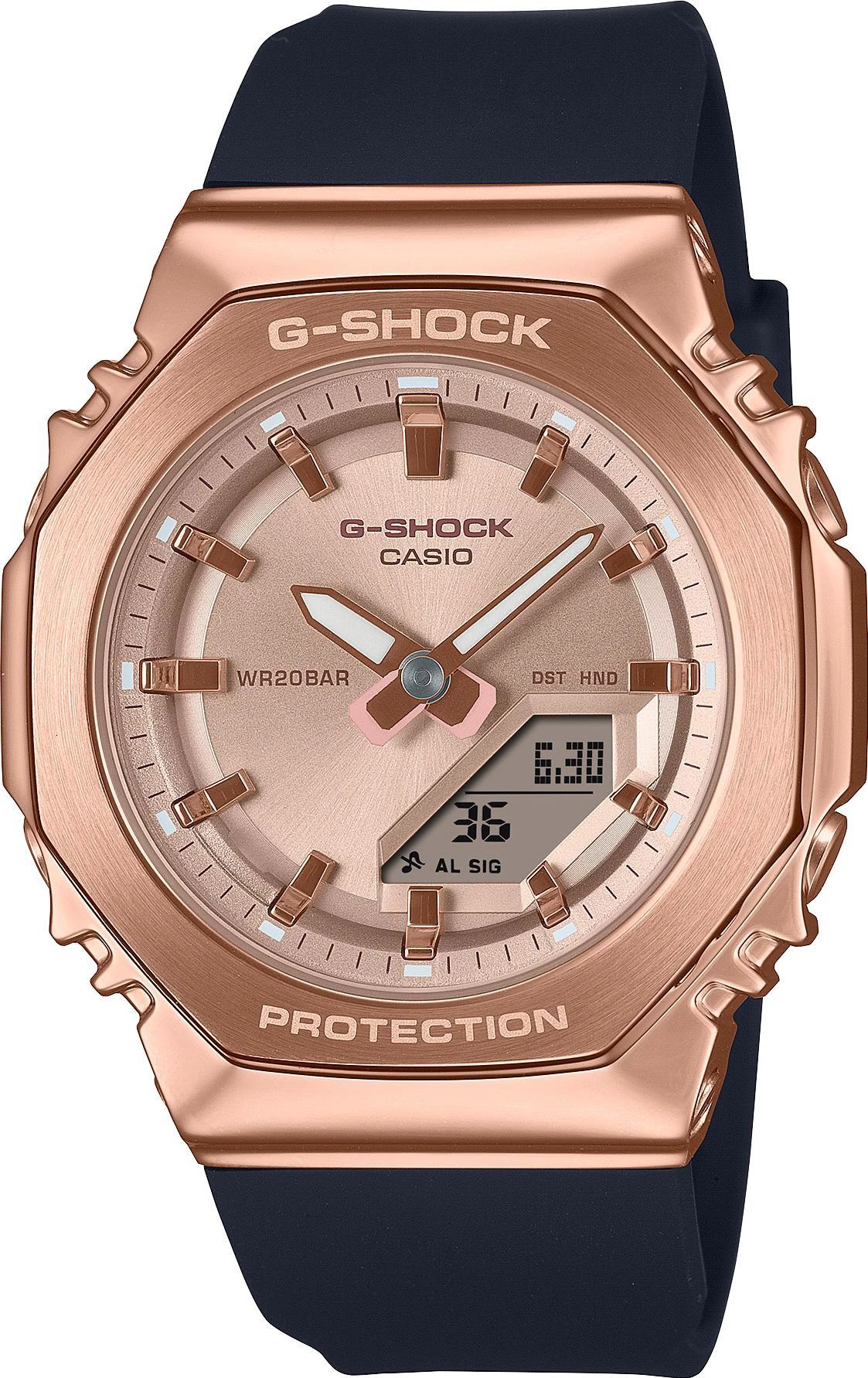 Женские наручные часы Casio G-Shock GM-S2110PG-1A4. Точный кварцевый механизмОтображение текущего времени в основных городах и конкретных областях по всему миру. Ударопрочная конструкция часов защищает от ударов и вибрации. Функция будильника. Функция таймера. Таймеры обратного отсчета напомнят Вам о текущих или особенных событиях, издав звуковой сигнал в установленное время. Для подсветки дисплея используется светодиод, а так же имеет функцию автоматического включения подсветки, если Вы наклоните часы к своему лицу. Ежечасный сигнал. Отображение времени возможно в 12-часовом или 24-часовом формате. Аккумулятор обеспечивает часы достаточным питанием приблизительно на 3 года. Корпус изготовлен из высококачественной нержавеющей стали 316L с высокими антикоррозийными свойствами. Прочное, устойчивое к царапинам минеральное стекло защищает часы от повреждений. На циферблате отображается текущее число, месяц и день недели. Часы являются водонепроницаемыми до 20 Бар. Цвет циферблата: Черный. Цвет циферблата: Розовое золото. Цвет корпуса: Розовый. Светодиодная подсветка. Толщина: 11.0000 мм. Гарантия: 2 года.
