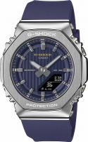 G-Shock. Женские часы. Противоударный корпус защищает механизм от ударов и вибрации. Двойная подcветка: циферблат и ЖК-дисплеи подсвечиваются светодиодом, благодаря наличию функции задержки, после отпускания кнопки освещение горит еще несколько секунд. Настраиваемое послесвечение 1,5 или 3сек. Цвет подсветки: белый. Необритовое светонакопительное покрытие обеспечивает длительное послесвечение в темноте даже после кратковременного нахождения на свету. Имеется мужской вариант модели GM-2110SH-2A.