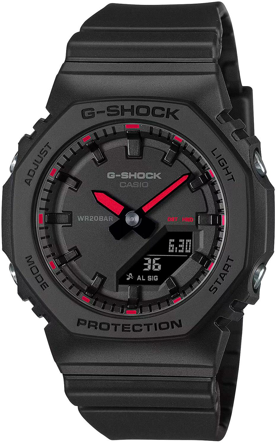 Многофункциональные часы с аналогово-цифровым черным циферблатом в ударопрочном полимерном корпусе с необритовым покрытием оснащены двойной белой светодиодной подсветкой с настраиваемой длительностью 1,5 или 3 секунды и функцией послесвечения. Модель обладает точным секундомером с измерением до 1/100 секунды и пределом 24 часа, 24-часовым таймером обратного отсчета для тренировок и приема лекарств, функцией мирового времени для 31 часовой зоны 48 городов, пятью ежедневными будильниками и ежечасным сигналом. Автоматический календарь корректируется до 2099 года с поддержкой 12/24-часового формата времени, а также предусмотрены функции блокировки звука кнопок и корректировки положения стрелок. Ударопрочная конструкция обеспечивает надежную защиту от вибрации и механических воздействий.