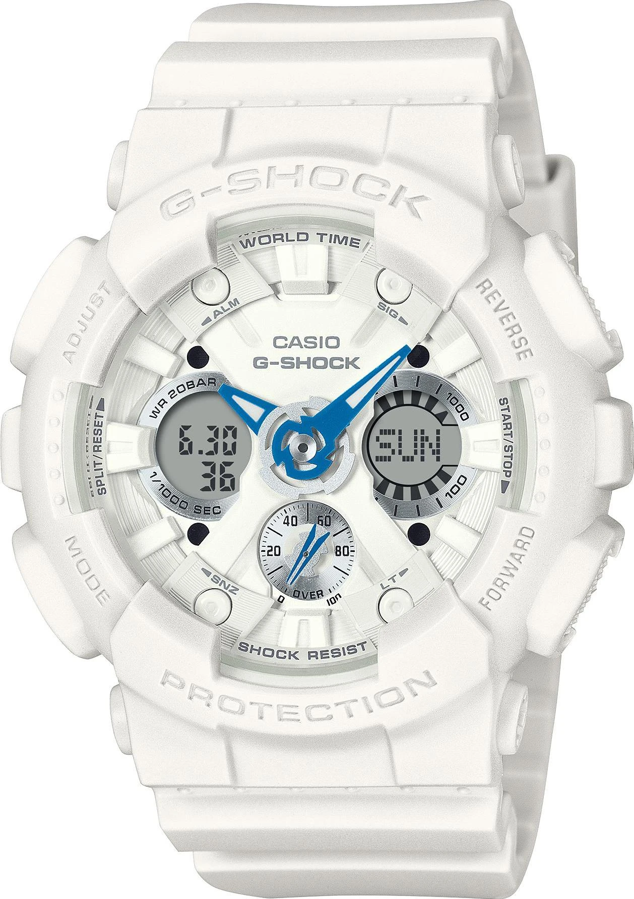 Сделайте свой образ стильным, современным и спортивным с помощью ярких акцентных цветов. В модели GMA-S120SA мы начинаем с классического белого цвета и добавляем акценты в ярких оттенках, вдохновленных спортивной экипировкой, создавая эффектный контраст, который подчеркивает спортивный стиль. Ключевые компоненты безеля и ремешка изготовлены из биополимера. Этот материал, изготовленный из возобновляемых органических ресурсов, способствует снижению воздействия на окружающую среду. Часы отличаются характерным циферблатом с объемными элементами, создающими многослойную глубину, и чистым, чистым белым оттенком. Стрелки часов выполнены в ярком оранжевом или синем цвете и покрыты фосфоресцирующим белым цветом, что придает им освежающее ощущение открытости в свободные и веселые летние дни.