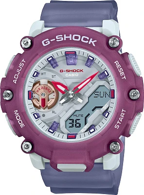 Женские наручные часы Casio G-Shock GMA-S2200PE-6A. Точный кварцевый механизм с аналоговой индикацией. Полимерный ремешок. Натуральный полимерный материал является идеальным для изготовления ремешка благодаря своей чрезвычайной прочности и гибкости. После настройки автоматический календарь всегда отображает точную дату. Для подсветки дисплея используется светодиод, а так же имеет функцию автоматического включения подсветки, если Вы наклоните часы к своему лицу. Аккумулятор обеспечивает часы достаточным питанием приблизительно на 3 года. Функция будильника. Функция хронографа. Отображение текущего времени в основных городах и конкретных областях по всему миру. Функция таймера. Таймеры обратного отсчета напомнят Вам о текущих или особенных событиях, издав звуковой сигнал в установленное время. Ударопрочная конструкция часов защищает от ударов и вибрации. Отображение времени возможно в 12-часовом или 24-часовом формате. Карбоновый браслет. Полимерный ремешок. Натуральный полимерный материал является идеальным для изготовления ремешка благодаря своей чрезвычайной прочности и гибкости. Прочное, устойчивое к царапинам минеральное стекло защищает часы от повреждений. На циферблате отображается текущее число, месяц и день недели. Часы являются водонепроницаемыми до 20 Бар. Цвет циферблата: Фиолетовый. Цвет корпуса: Серый. Светодиодная подсветка. На стрелки и отметки нанесен светонакопительный состав, благодаря этому считывать информацию с циферблата возможно и в темноте. Толщина: 12 мм. Гарантия: 2 года.