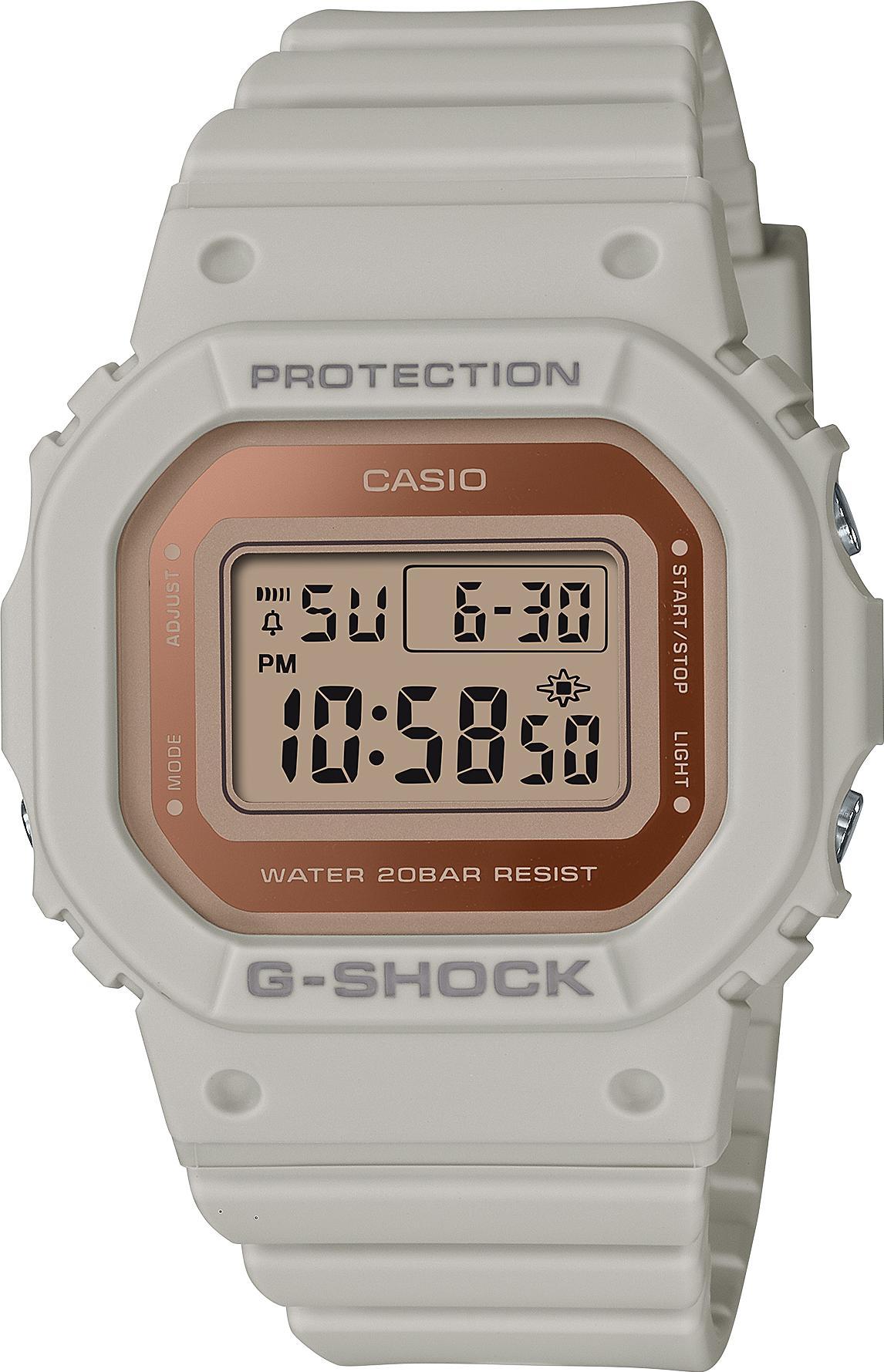 Женские наручные часы Casio G-Shock GMD-S5600-8E. Точный кварцевый механизм с цифровой индикацией. Корпус изготовлен из высококачественной нержавеющей стали 316L с высокими антикоррозийными свойствами. Светодиодная подсветка. На циферблате отображается текущее число, месяц и день недели. Ударопрочная конструкция часов защищает от ударов и вибрации. Функция хронографа. Функция таймера. Таймеры обратного отсчета напомнят Вам о текущих или особенных событиях, издав звуковой сигнал в установленное время. Функция будильника. Аккумулятор обеспечивает часы достаточным питанием приблизительно на 3 года. После настройки автоматический календарь всегда отображает точную дату. Отображение времени возможно в 12-часовом или 24-часовом формате. Браслет из нержавеющей стали. Прочное, устойчивое к царапинам минеральное стекло защищает часы от повреждений. Часы являются водонепроницаемыми до 20 Бар. Цвет корпуса: Белый. Цвет циферблата: Золотистый. Ширина (с заводной головкой): 46мм. Толщина: 12мм. Гарантия: 2 года. Другие наименования модели: GMD-S5600-8, GMD-S5600-8ER, GMD-S5600-8D.