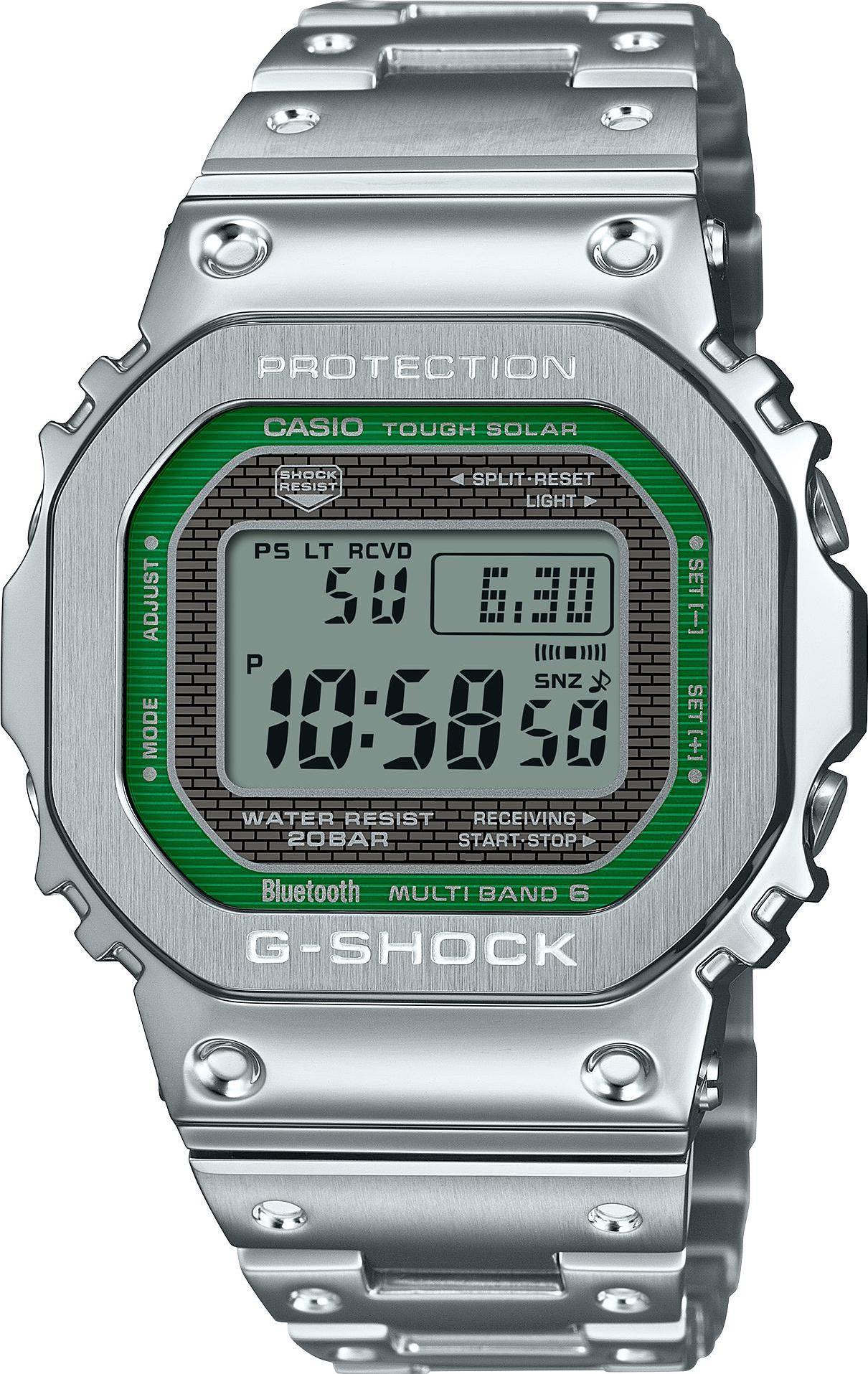 Мужские наручные часы Casio G-Shock GMW-B5000D-3E. Точный кварцевый механизм с цифровой индикацей. Браслет из нержавеющей стали. После настройки автоматический календарь всегда отображает точную дату. Функция Bluetooth позволяет удобно отображать все метрики с часов на экране смартфона, а также выводить на часы уведомления о входящих звонках, сообщениях и имейлах. Функция будильника. Ежечасный сигнал. Функция хронографа. Индикатор запаса хода. Отображение текущего времени в основных городах и конкретных областях по всему миру. Солнечная батарейка. Солнечная подзаряжающаяся батарейка обеспечивает питание часов для работы. Функция таймера. Таймеры обратного отсчета напомнят Вам о текущих или особенных событиях, издав звуковой сигнал в установленное время. Ударопрочная конструкция часов защищает от ударов и вибрации. Отображение времени возможно в 12-часовом или 24-часовом формате. Браслет из нержавеющей стали. Прочное, устойчивое к царапинам минеральное стекло защищает часы от повреждений. На циферблате отображается текущее число, месяц и день недели. Часы являются водонепроницаемыми до 20 Бар. Цвет циферблата: Серебристый. Цвет корпуса: Зеленый. Цвет корпуса: Серый. Светодиодная подсветка. Высота (с ушками): 49 мм. Толщина: 13 мм. Гарантия: 2 года.