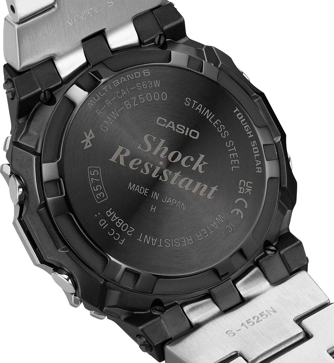 Мужские часы Casio GMW-BZ5000D-1E. Данная модель собирается в Японии на производстве Casio в Ямагата. Питание от солнечной энергии Tough Solar — солнечные батарейки большой мощности, индикатор заряда батареи. Функция автоматического сохранения энергии. Время работы аккумулятора без подзарядки до 6 месяцев, при включенной функции сохранения энергии до 22 месяцев. Противоударный корпус защищает механизм от ударов и вибрации. Циферблат подсвечивается ярким светодиодом. Полностью автоматическая подсветка, выбираемая продолжительность свечения (1,5 или 3 секунды), послесвечение. Цвет подсветки: белый. Дисплей mip LCD с возможностью выбора шрифта отображения данных (Classic или Standard) позволяет легко считывать данные даже в темноте.