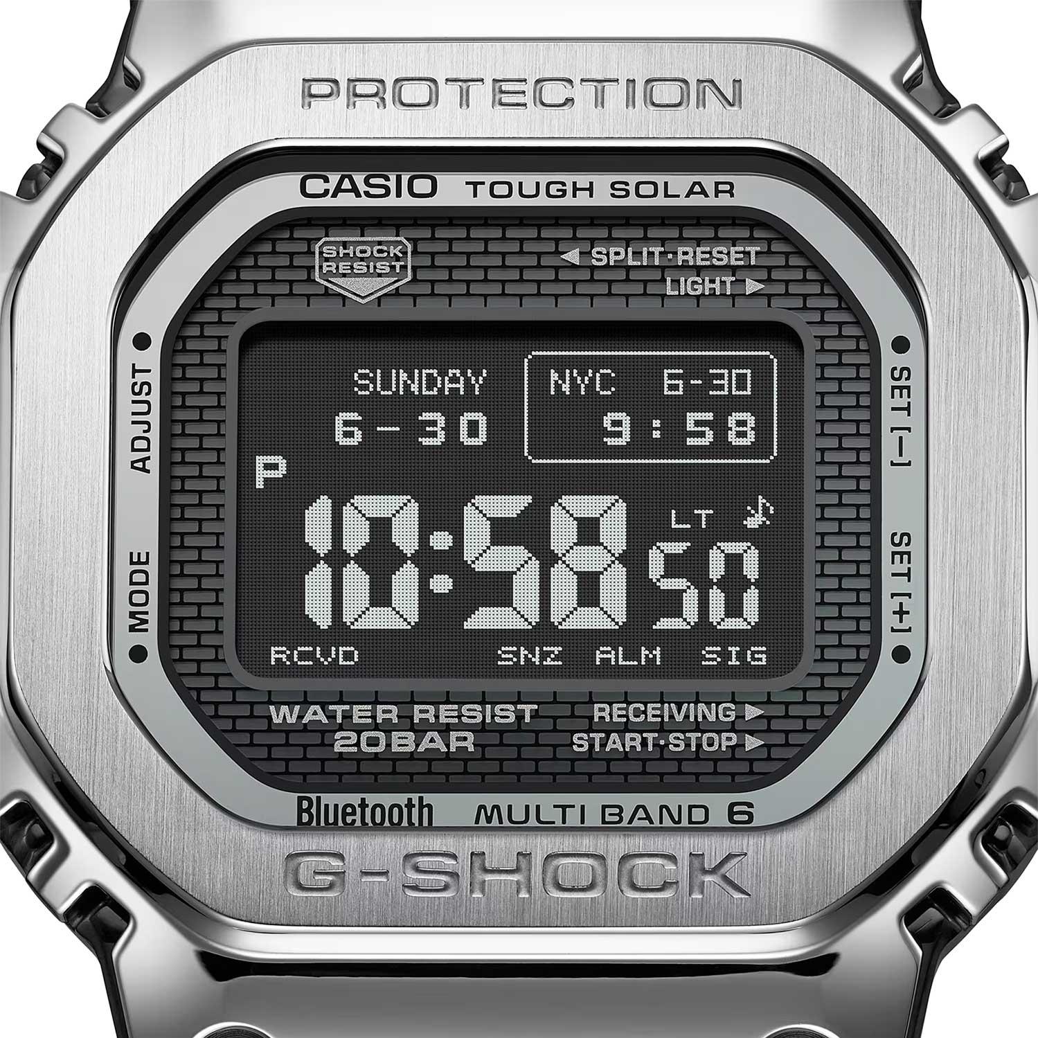 12-ти и 24-х часовой формат времени. Секундомер с двумя точностями показаний: 1/100с (до 1ч) и 1с (после 1ч) и временем измерения 24ч. Секундомер с функцией SPLIT. Таймер обратного отсчета от 1c до 24ч. Мировое время – 55 городов (38 часовых поясов), всемирное координированное время (UTC). Автоматический переход на зимнее и летнее время, возможность включения/отключения данной функции. Переключение между домашним и мировым временем. Отображение кода и названия города. Возможность выбора 2 городов в качестве избранных в WorldTime. Технология Multi Band 6 позволяет принимать сигналы от шести радиовышек, расположенных в различных точках земного шара, которые передают временные сигналы от определенных атомных часов. Коррекция текущего времени радиосигналом почти по всему миру: Англия, Германия, США, Япония и Китай. Беспроводная технология Bluetooth со сверхнизким потреблением энергии для синхронизации со смартфоном. При подключении к смартфону часы автоматически корректируют текущее время, в том числе переход на зимнее/летнее время, копируют настройки мирового времени более чем для 300 городов. Функции поиска телефона и включения/отключения звука. Смена отображения даты/месяца. Задняя крышка с винтовым фиксатором. Литой браслет с раскладывающейся тройной застежкой, расстегиваемой одним касанием.