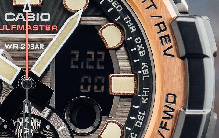 Все преимущества ударопрочных и водостойких часов в исполнении премиум-класса. Цифроаналоговая модель из серии GULFMASTER к традиционному многофункциональному набору имеет датчики компаса и термометра. Отображение графика приливов/отливов и фаз Луны