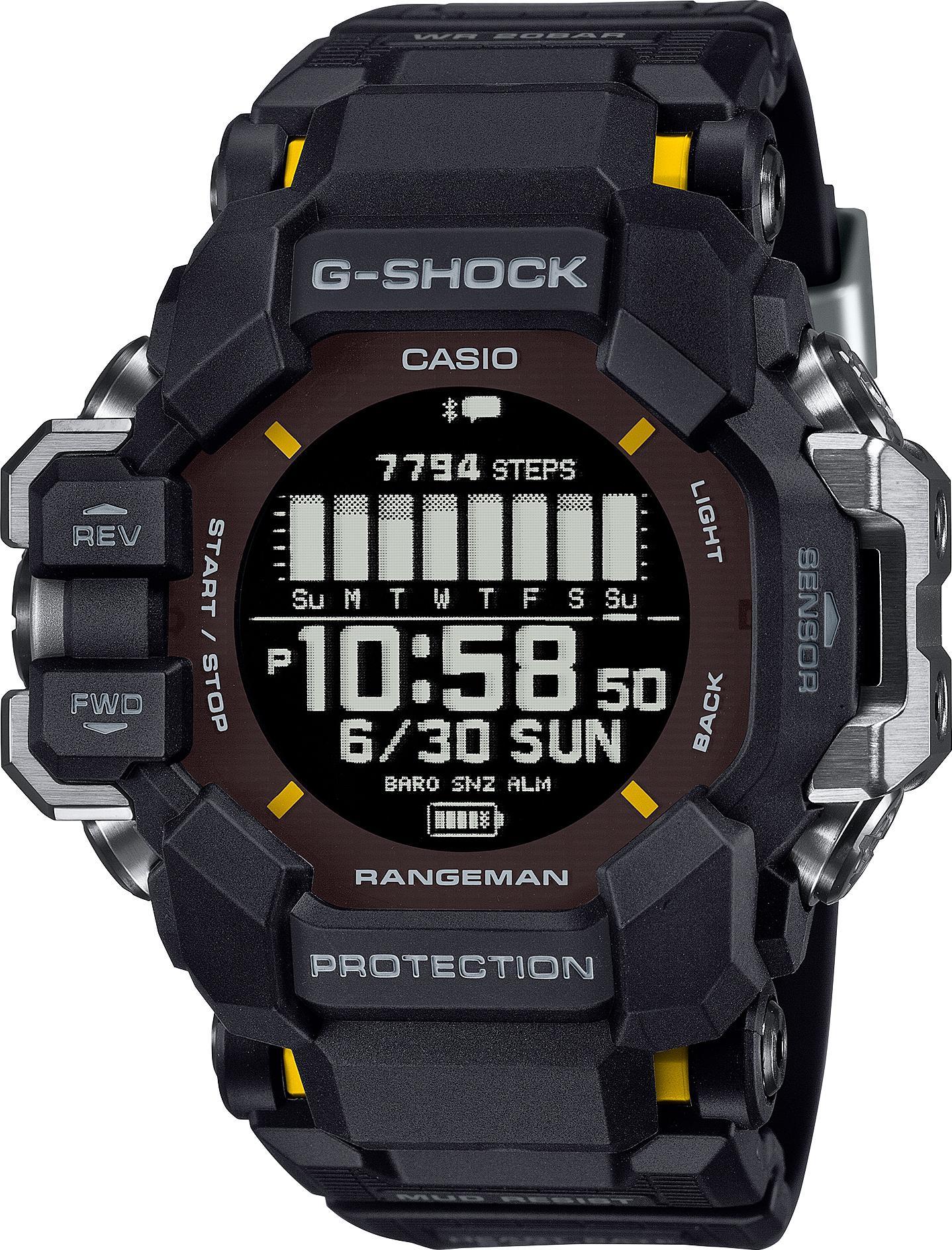 Мужские наручные часы Casio G-Shock GPR-H1000-1E. Точный кварцевый механизм с цифровой индикацей. Полимерный ремешок. Натуральный полимерный материал является идеальным для изготовления ремешка благодаря своей чрезвычайной прочности и гибкости. После настройки автоматический календарь всегда отображает точную дату. Для подсветки дисплея используется светодиод, а так же имеет функцию автоматического включения подсветки, если Вы наклоните часы к своему лицу. Специальный датчик измеряет давление воздуха и отображает измеренное значение на экране в виде символа. Это дает возможность заранее определить изменения погоды. Функция Bluetooth позволяет удобно отображать все метрики с часов на экране смартфона, а также выводить на часы уведомления о входящих звонках, сообщениях и имейлах. Функция будильника. Ежечасный сигнал. Отображение фаз Луны. Часы определяют возраст Луны в текущий момент для текущего местоположения. Gps-синхронизация. Встроенный цифровой компас определяет северный магнитный полюс. Отображение текущего времени в основных городах и конкретных областях по всему миру. Часы отображают фазы прилива и отлива для текущего региона в заданный период времени. Информация может быть полезна, если нужно заранее знать время прилива или отлива в конкретном месте. Радио-синхронизация. Часы будут получать радио-сигнал калибровки, гарантирующий, что они всегда будут показывать точное время. Шагомер. Солнечная батарейка. Солнечная подзаряжающаяся батарейка обеспечивает питание часов для работы. Функция таймера. Таймеры обратного отсчета напомнят Вам о текущих или особенных событиях, издав звуковой сигнал в установленное время. Термометр. Датчик измеряет температуру окружающего воздуха вокруг часов и отображает ее на экране в градусах. Ударопрочная конструкция часов защищает от ударов и вибрации. Данные о восходе/закате солнца. После введения географического местоположения, на экране будет отображаться восход и закат солнца для любой установленной даты. Отображение времени возможно в 12-часовом или 24-часовом формате. Высотомер (альтиметр). Встроенный датчик давления определяет изменения в атмосферном давлении и преобразовывает полученные результаты в абсолютную высоту. Полимерный ремешок. Натуральный полимерный материал является идеальным для изготовления ремешка благодаря своей чрезвычайной прочности и гибкости. Прочное, устойчивое к царапинам минеральное стекло защищает часы от повреждений. На циферблате отображается текущее число, месяц и день недели. Часы являются водонепроницаемыми до 20 Бар. Цвет циферблата: Черный. Цвет корпуса: Черный. Светодиодная подсветка. Высота (с ушками): 61 мм. Толщина: 20 мм. Гарантия: 2 года.
