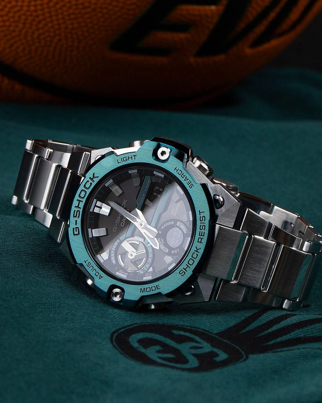 Компания CASIO представляет новое цветовое решение модели в линейке G-STEEL. Часы GST-B400 отличаются толщиной корпуса в 12.9 мм (от задней крышки до верхней части безеля), что на 1 мм меньше чем у модели GST-B100. Такое уменьшение стало возможным благодаря применению технологии CARBON CORE GUARD STRUCTURE при создании корпуса часов. Так же был уменьшен механизм часов, это никак не повлияло на качество связи модуля Bluetooth. В то же время энергоэффективность технологии солнечного аккумулятора TOUGH SOLAR была значительно улучшена. Еще одно нововведение - изменение структуры строения кнопок, что позволило использовать большие стальные кнопки, которые аккуратно вписаны в корпус часов. Ключевой особенностью коллекции G-STEEL являются стальные элементы корпуса, а безель модели GST-B400 выполнен из стали с пятью разными подходами шлифовке, стальной внешний корпус отличается сочетанием разных граней и использует четыре разных типа шлифовки. Такой подход создает очень притягательные и элегантные часы, которые раскрываются по разному в зависимости от угла обзора.