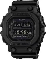 Мужские часы Casio G-Shock GX-56UBB-1E. Питание от солнечной энергии Tough Solar — солнечные батарейки большой мощности. Индикатор заряда батареи. Функция автоматического сохранения энергии (отключает LCD дисплей). Время работы аккумулятора без подзарядки — 13 месяцев, при включенной функции сохранения энергии — 27 месяцев. Противоударный корпус защищает механизм от ударов и вибрации. Защита от попадания внутрь пыли и грязи. Светодиодная подсветка (Super Illuminator). Полностью автоматическая светодиодная подсветка, выбираемая продолжительность свечения (1,5 или 3 секунды), послесвечение. 12-ти и 24-х часовой формат времени. Секундомер с точностью показаний 1/100с и временем измерения 24ч. Секундомер с функцией SPLIT. Таймер обратного отсчета времени от 1мин до 24ч. Мировое время – 38 городов (31 часовой пояс), всемирное координированное время (UTC). 5 ежедневных будильников. Ежечасный сигнал. Полностью автоматический календарь (до 2099 года). Функции включения/отключения летнего времени и включения/отключения звука. Задняя крышка крепится на 4-х винтах. Ремешок с классической застежкой.