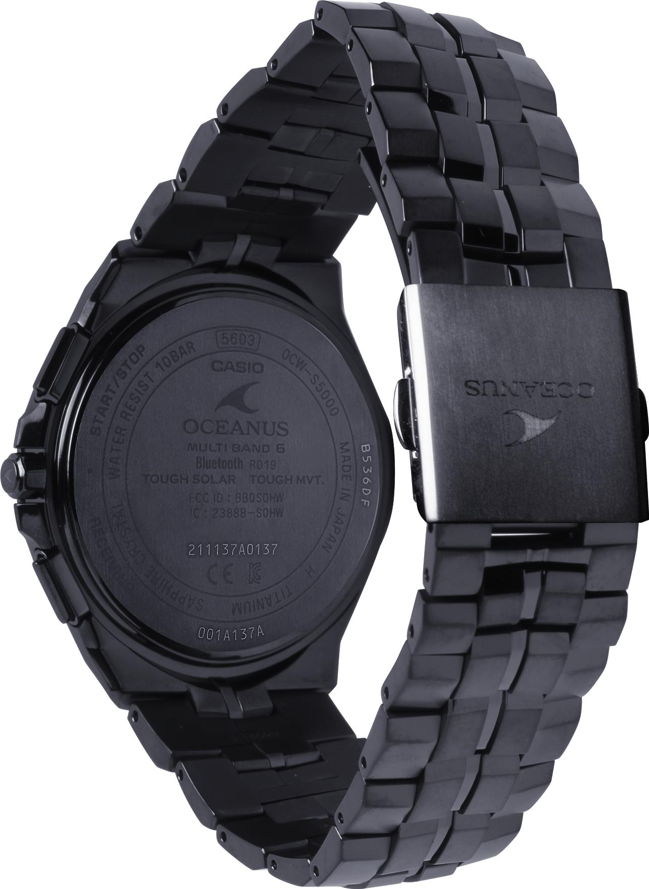 Мужские наручные часы Casio Oceanus OCW-S5000B-1A. Точный кварцевый механизмТитановый браслет. Отображение текущего времени в основных городах и конкретных областях по всему миру. Функция будильника. Функция Bluetooth позволяет удобно отображать все метрики с часов на экране смартфона, а также выводить на часы уведомления о входящих звонках, сообщениях и имейлах. Солнечная батарейка. Солнечная подзаряжающаяся батарейка обеспечивает питание часов для работы. После настройки автоматический календарь всегда отображает точную дату. Корпус изготовлен из высокопрочного титана. Сапфировое стекло. Искусственно изготовленное стекло с высокой прочностью и устойчивостью к царапинам. На циферблате отображается текущее число месяца. Часы являются водонепроницаемыми до 3 Бар. Цвет циферблата: Черный. Цвет корпуса: Синий. Цвет корпуса: Черный. Светодиодная подсветка. Толщина: 9.5 мм. Гарантия: 2 года.