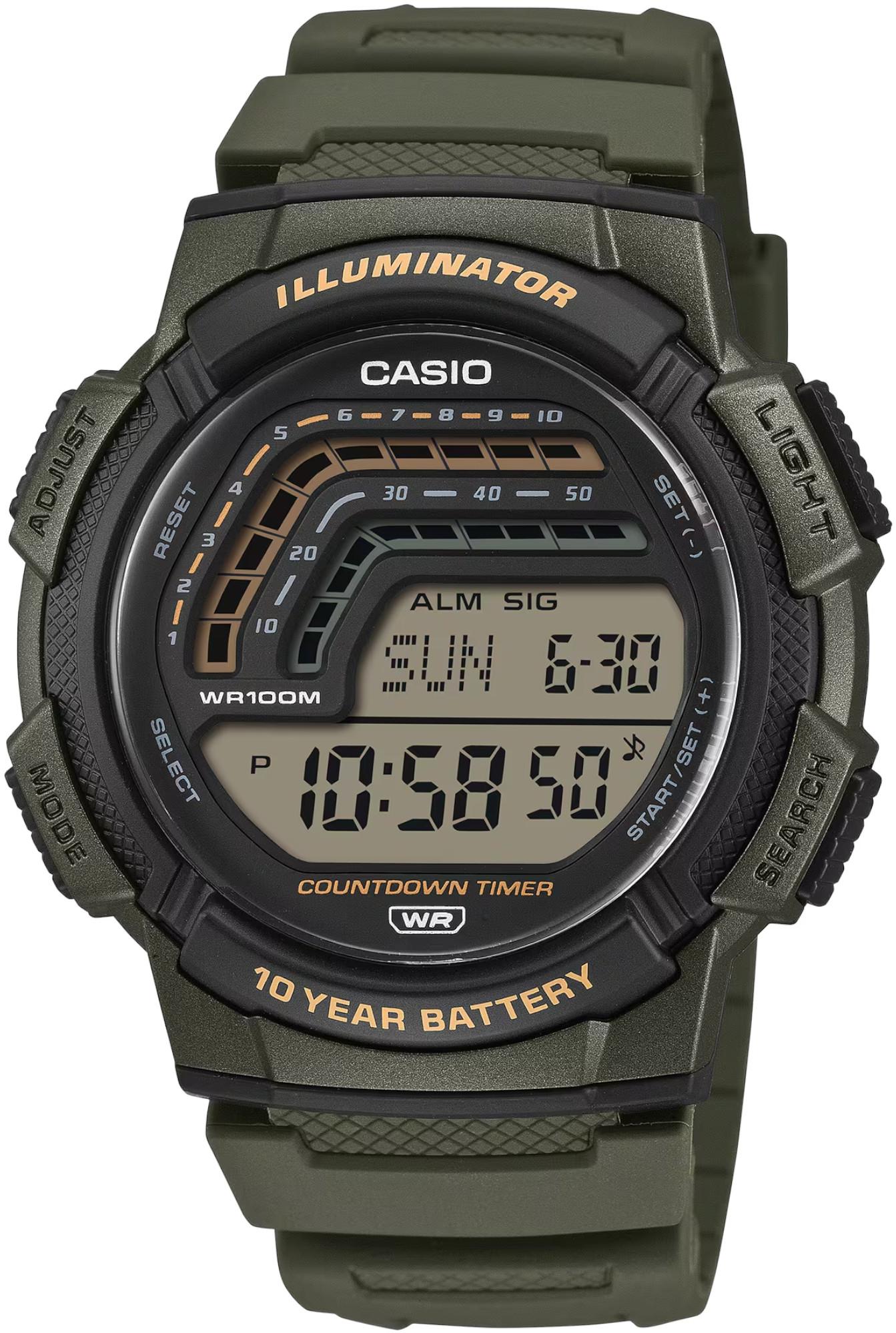 Мужские наручные часы Casio Sports WS-1800-3A. Точный кварцевый механизм с цифровой индикацей. В отличие от механических часов, не требуют завода и работают от батареи, показывая отклонение всего несколько секунд в месяц. Светодиодная подсветка обеспечивает равномерное и энергоэффективное освещение циферблата. Для активации обычно требуется нажатие отдельной кнопки, что позволяет экономить заряд батареи.Полимерный ремешок. Натуральный полимерный материал является идеальным для изготовления ремешка благодаря своей чрезвычайной прочности и гибкости. Отображение текущего времени в основных городах и конкретных областях по всему миру. Функция будильника. Функция хронографа. Функция таймера. Таймеры обратного отсчета напомнят Вам о текущих или особенных событиях, издав звуковой сигнал в установленное время. Ежечасный сигнал. Аккумулятор обеспечивает часы достаточным питанием приблизительно на 10 лет. После настройки автоматический календарь всегда отображает точную дату. Отображение времени возможно в 12-часовом или 24-часовом формате. Полимерный корпус надежно защищает часы от механических повреждений. Органическое стекло. Часы являются водонепроницаемыми до 10 Бар. Цвет корпуса: Зеленый. Цвет корпуса: Черный. Цвет циферблата: Серый. Цвет циферблата: Черный. Высота (с ушками): 48.2 мм. Толщина: 13.8 мм. Гарантия: 2 года.