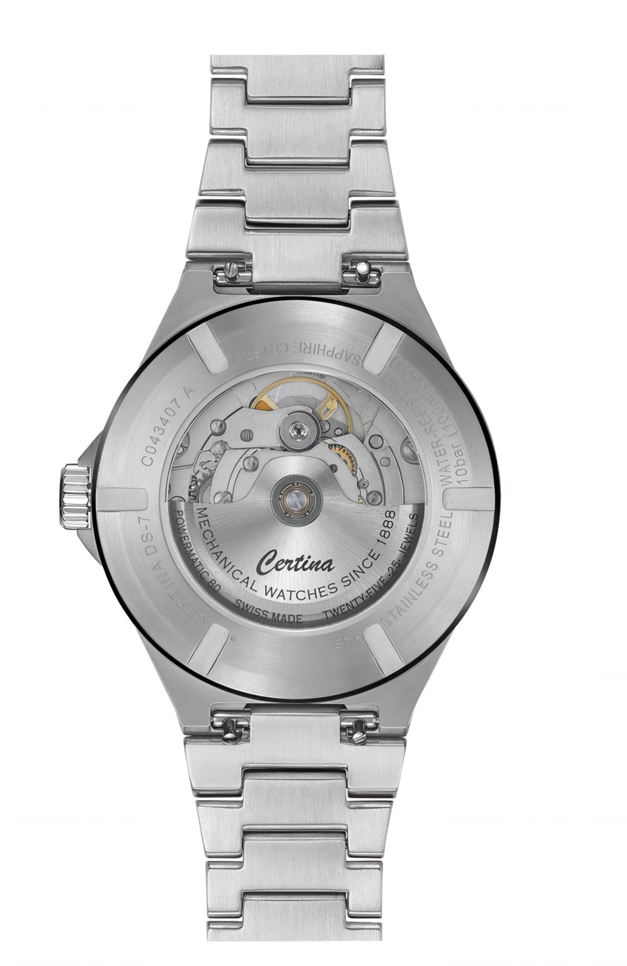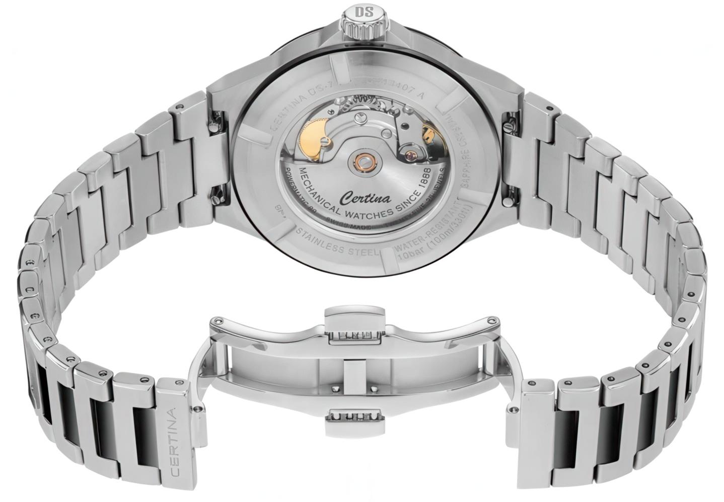 Certina Мужские швейцарские часы DS-7 C043.407.22.091.00. Механические с автоподзаводом. Пружина механизма заводится автоматически благодаря естественным движениям владельца в процессе ежедневной носки часов. На стрелки и отметки нанесен светонакопительный состав, благодаря этому считывать информацию с циферблата возможно и в темноте. Браслет из нержавеющей стали обладает высокой прочностью и износостойкостью, обеспечивая долговечность даже при активной эксплуатации. Материал устойчив к коррозии и сохраняет свой внешний вид надолго. Корпус изготовлен из высококачественной нержавеющей стали 316L с высокими антикоррозийными свойствами. Сапфировое стекло. Искусственно изготовленное стекло с высокой прочностью и устойчивостью к царапинам. Часы являются водонепроницаемыми до 10 Бар. Цвет корпуса: Серебристый. Цвет циферблата: Зеленый. Толщина: 10 мм. Гарантия: 2 года.