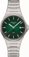 Certina Мужские швейцарские часы DS-7 C043.410.11.091.00. Точный кварцевый механизм с аналоговой индикацией. В отличие от механических часов, не требуют завода и работают от батареи, показывая отклонение всего несколько секунд в месяц. На стрелки и отметки нанесен светонакопительный состав, благодаря этому считывать информацию с циферблата возможно и в темноте. Браслет из нержавеющей стали обладает высокой прочностью и износостойкостью, обеспечивая долговечность даже при активной эксплуатации. Материал устойчив к коррозии и сохраняет свой внешний вид надолго. После настройки автоматический календарь всегда отображает точную дату. Корпус изготовлен из высококачественной нержавеющей стали 316L с высокими антикоррозийными свойствами. Сапфировое стекло. Искусственно изготовленное стекло с высокой прочностью и устойчивостью к царапинам. Часы являются водонепроницаемыми до 10 Бар. Цвет корпуса: Серебристый. Цвет циферблата: Зеленый. Толщина: 10 мм. Гарантия: 2 года.