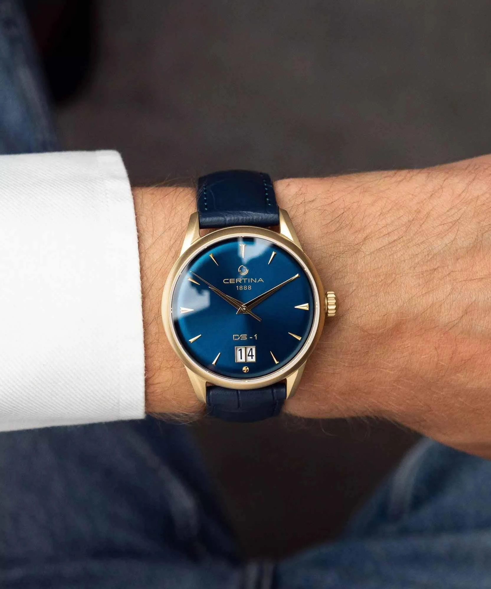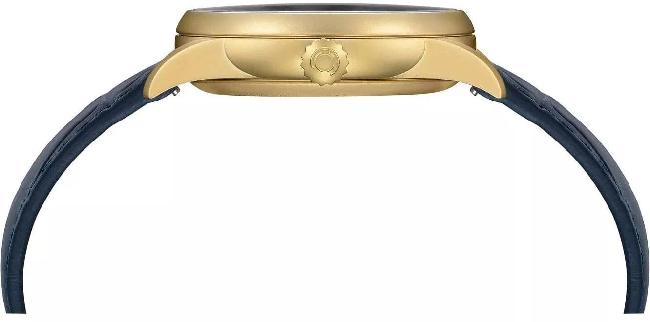 Синий циферблат с эффектом sunray создает игру света, переливаясь под разными углами, а золотистые стрелки и метки подчеркивают статусность модели. Удобство чтения времени и даты обеспечено крупным окном Big Date и сапфировым стеклом с антибликовым покрытием, которое гарантирует защиту от повреждений и идеальную читаемость при любом освещении.