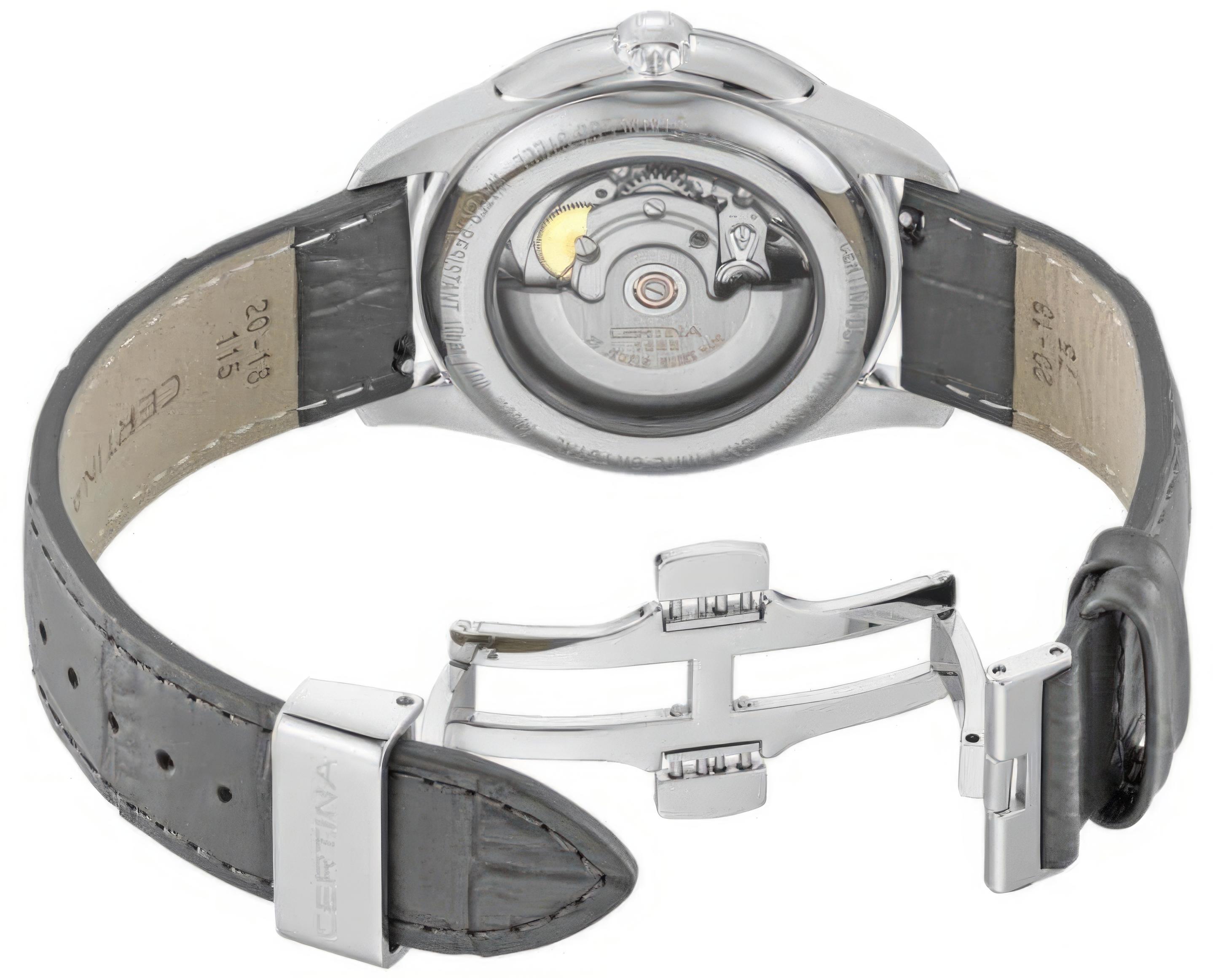 Certina Мужские швейцарские часы DS-1 C029.430.16.011.01. Механические с автоподзаводом. Пружина механизма заводится автоматически благодаря естественным движениям владельца в процессе ежедневной носки часов. Ремешок изготовлен из кожи. Гибкость такого ремешка позволяет точно регулировать посадку часов на руке. Корпус изготовлен из высококачественной нержавеющей стали 316L с высокими антикоррозийными свойствами. Сапфировое стекло. Искусственно изготовленное стекло с высокой прочностью и устойчивостью к царапинам. Часы являются водонепроницаемыми до 10 Бар. Цвет корпуса: Серебристый. Цвет циферблата: Бежевый. Цвет циферблата: Белый. Толщина: 11.53 мм. Гарантия: 2 года.