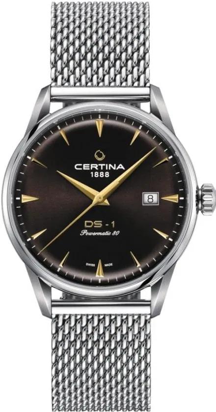 Мужские наручные часы Certina DS-1 C029.807.11.291.02. Механические с ручным подзаводом. Корпус изготовлен из высококачественной нержавеющей стали 316L с высокими антикоррозийными свойствами. На циферблате отображается текущее число месяца. Браслет из нержавеющей стали. Сапфировое стекло. Искусственно изготовленное стекло с высокой прочностью и устойчивостью к царапинам. Часы являются водонепроницаемыми до 10 Бар. Цвет корпуса: Серебристый. Цвет циферблата: Коричневый. Ширина (с заводной головкой): 40мм. Толщина: 11мм. Гарантия: 2 года.
