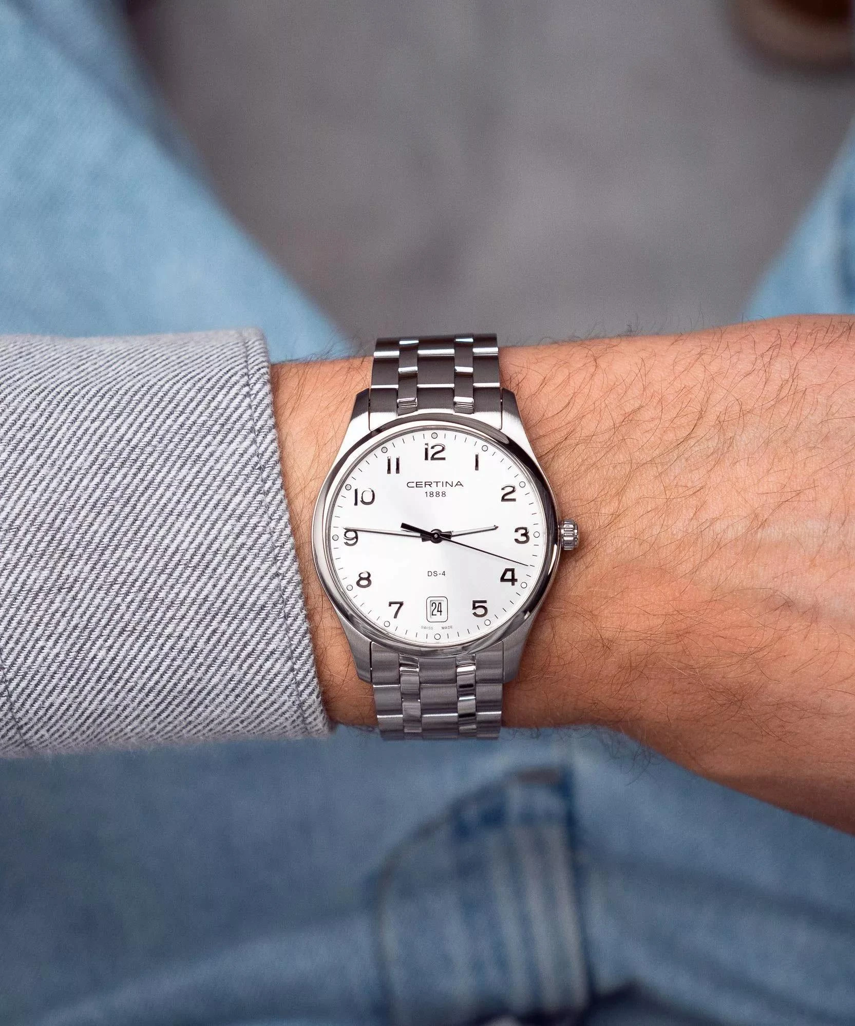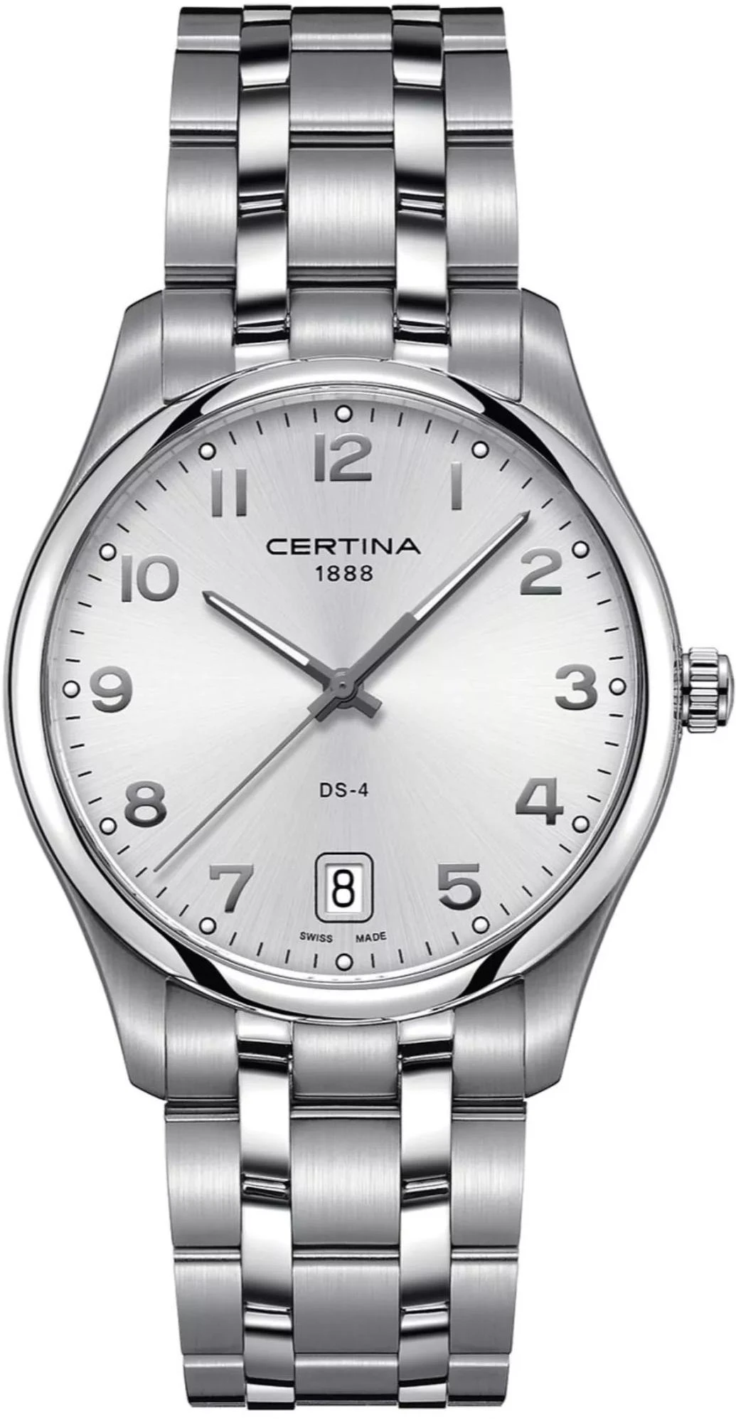 Швейцарские кварцевые мужские наручные часы Certina DS-4 C022.610.11.032.00 на стальном браслете — это элегантный и функциональный аксессуар, который станет отличным дополнением к вашему стилю. Точность хода обеспечивает кварцевый механизм. Калибр механизма ETA F07.111. Окошко даты в положении 6 часов. Сапфировое стекло с антибликовым покрытием. Корпус и браслет из нержавеющей стали. Застежка «бабочка» с кнопками. Класс водозащиты 100 метров (10 АТМ/bar): часы подходят для плавания и погружения на глубину 5-7 м (выдвигать заводную головку и нажимать кнопки, находясь в воде, нельзя).