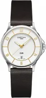 Женские наручные часы Certina DS-6 C039.251.17.017.01. Точный кварцевый механизм с аналоговой индикацией. Корпус изготовлен из высококачественной нержавеющей стали 316L с высокими антикоррозийными свойствами. На стрелки и отметки нанесен светонакопительный состав, благодаря этому считывать информацию с циферблата возможно и в темноте. На циферблате отображается текущее число месяца. Ремешок изготовлен из кожи. Сапфировое стекло. Искусственно изготовленное стекло с высокой прочностью и устойчивостью к царапинам. Часы являются водонепроницаемыми до 10 Бар. Цвет корпуса: Серебристый. Цвет циферблата: Белый. Ширина (с заводной головкой): 35мм. Толщина: 7мм. Гарантия: 2 года.