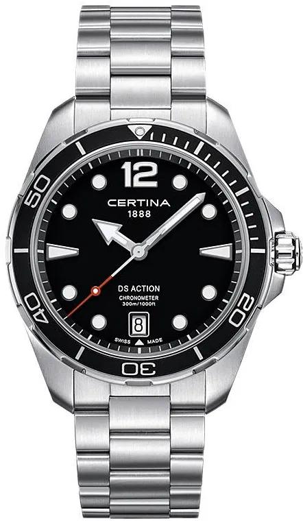 <b>Мужские наручные часы Certina Женские наручные часы C032.451.11.057.00.</b> Точный кварцевый механизм с аналоговой индикацией. Корпус изготовлен из высококачественной нержавеющей стали 316L с высокими антикоррозийными свойствами. На стрелки и отметки нанесен светонакопительный состав, благодаря этому считывать информацию с циферблата возможно и в темноте. На циферблате отображается текущее число месяца. Браслет из нержавеющей стали. Сапфировое стекло. Искусственно изготовленное стекло с высокой прочностью и устойчивостью к царапинам. Часы являются водонепроницаемыми до 30 Бар. Цвет корпуса: Черный. Цвет циферблата: Черный. Ширина (с заводной головкой): 43мм. Толщина: 12мм. Гарантия: 2 года.