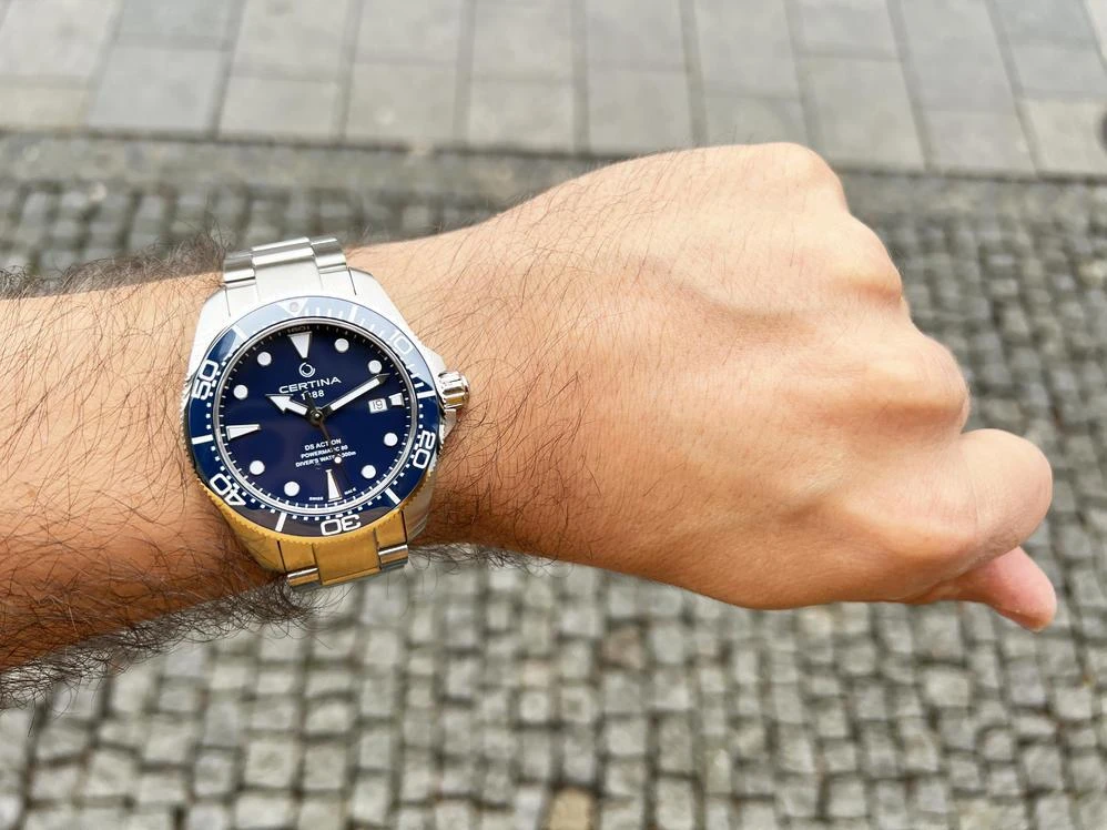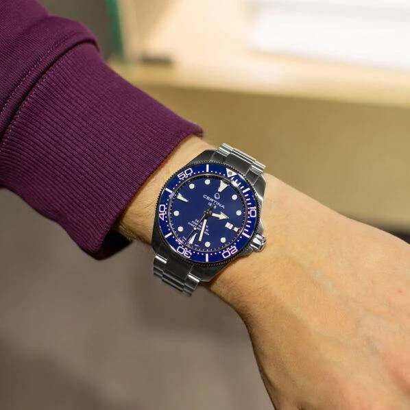 Мужские наручные часы Certina DS Action C032.607.11.041.00. Механические с ручным подзаводом. Корпус изготовлен из высококачественной нержавеющей стали 316L с высокими антикоррозийными свойствами. На стрелки и отметки нанесен светонакопительный состав, благодаря этому считывать информацию с циферблата возможно и в темноте. На циферблате отображается текущее число месяца. Браслет из нержавеющей стали. Сапфировое стекло. Искусственно изготовленное стекло с высокой прочностью и устойчивостью к царапинам. Часы являются водонепроницаемыми до 30 Бар. Цвет корпуса: Серебристый. Цвет циферблата: Синий. Ширина (с заводной головкой): 43мм. Толщина: 13мм. Гарантия: 2 года.