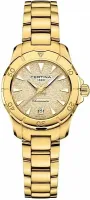Женские часы Certina DS Action C032.951.33.361.00. Точный кварцевый механизм с аналоговой индикацией. Корпус изготовлен из высококачественной нержавеющей стали 316L с высокими антикоррозийными свойствами. Браслет из нержавеющей стали. Часы являются водонепроницаемыми до 20 Бар. Цвет корпуса: Желтое золото. Цвет циферблата: Золотистый. Ширина (с заводной головкой): 29мм. Толщина: 10мм. Гарантия: 2 года.