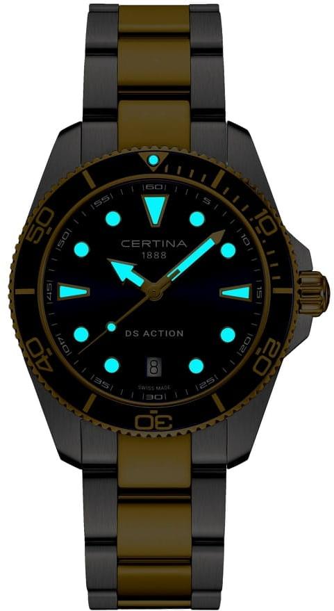 Швейцарские кварцевые мужские часы Certina DS Action 40mm C048.410.22.041.00 на стальном браслете — это элегантный и надежный аксессуар, который станет отличным дополнением к вашему стилю. Часы Precidrive с погрешностью до +/-10 секунд в год в 8–10 раз точнее обычных кварцевых часов. Покрытие Super-Luminova на стрелках и метках поможет узнать время даже в темноте. Кварцевый калибр F06.412 PRECIDRIVE помещен в корпус из нержавеющей стали: это очень прочный гипоаллергенный материал, которому не грозит коррозия или изменения цвета. Окошко даты находится в положении 6 часов, сапфировое стекло с антибликовым покрытием. Браслет из нержавеющей стали, оснащен системой быстрой смены. Часы имеют указатель окончания срока службы элемента питания (EOL): когда секундная стрелка начинает двигаться с интервалами в 4 секунды, это сигнализирует о том, что элемент питания необходимо заменить в течение двух недель. Водозащита 300 метров (30 АТМ/bar): можно плавать, погружаться с аквалангом на глубину 70 метров. Эти мужские часы подходят как для повседневного использования, так и для особых или деловых событий, и станут прекрасным подарком на любой праздник для любителей швейцарских часов и стильных аксессуаров.