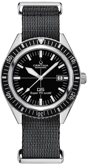 Certina Мужские швейцарские часы DS Super PH500M C037.407.18.050.00. Механические с автоподзаводом. Пружина механизма заводится автоматически благодаря естественным движениям владельца в процессе ежедневной носки часов. На стрелки и отметки нанесен светонакопительный состав, благодаря этому считывать информацию с циферблата возможно и в темноте. Текстильный ремешок. В отличие от кожаных ремешков, текстильный более устойчив к воздействию влаги и пота, не теряя своих свойств. Корпус изготовлен из высококачественной нержавеющей стали 316L с высокими антикоррозийными свойствами. Сапфировое стекло. Искусственно изготовленное стекло с высокой прочностью и устойчивостью к царапинам. Часы являются водонепроницаемыми до 50 Бар. Цвет корпуса: Серебристый. Цвет корпуса: Черный. Цвет циферблата: Черный. Высота (с ушками): 43 мм. Толщина: 15 мм. Гарантия: 2 года. Другие наименования модели: C0374071805000.