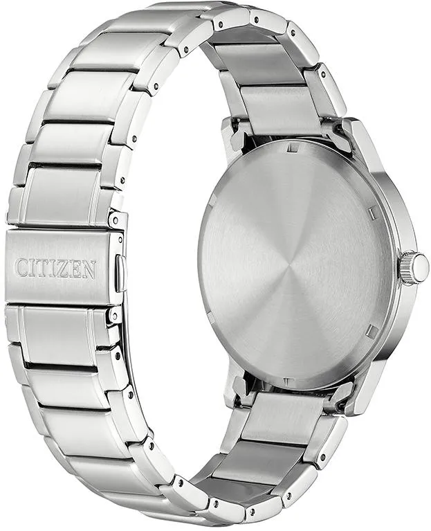 Точный кварцевый калибр J810. • Система ECO-DRIVE - патентованная технология CITIZEN заключающаяся в размещении фотоэлементов скрытых под циферблатом и постоянно подзаряжающих аккумулятор часов. • Центральные часовая, минутная и секундная стрелки. • Окошко даты. • Система предупреждения о низком уровне заряда аккумулятора за 72 часа до критического уровня. • Точность хода не хуже -/+15 сек./в месяц. • Диапазон пригодных для использования температур -10...+60C. • Показатель автономной работы: продолжительность работы после полной зарядки аккумулятора при последующем хранении в темноте - 240 дней. • Минеральное стекло устойчивое к возникновению царапин. • Корпус из высококачественного стального сплава 316L с высокими антикоррозийными свойствами. • Водозащита до 10 АТМ. • Литой браслет из нержавеющей стали. • Браслетный замок расстегиваемый одним касанием.