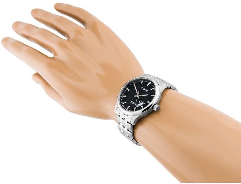 <b>Мужские наручные часы Citizen Quartz BI1050-81E.</b> Точный кварцевый механизм с аналоговой индикацией. Корпус изготовлен из высококачественной нержавеющей стали 316L с высокими антикоррозийными свойствами. На стрелки и отметки нанесен светонакопительный состав, благодаря этому считывать информацию с циферблата возможно и в темноте. На циферблате отображается текущее число месяца. Браслет из нержавеющей стали. Прочное, устойчивое к царапинам минеральное стекло защищает часы от повреждений. Часы являются водонепроницаемыми до 5 Бар. Цвет корпуса: Серебристый. Цвет циферблата: Черный. Ширина (с заводной головкой): 40мм. Толщина: 9мм. Гарантия: 2 года.