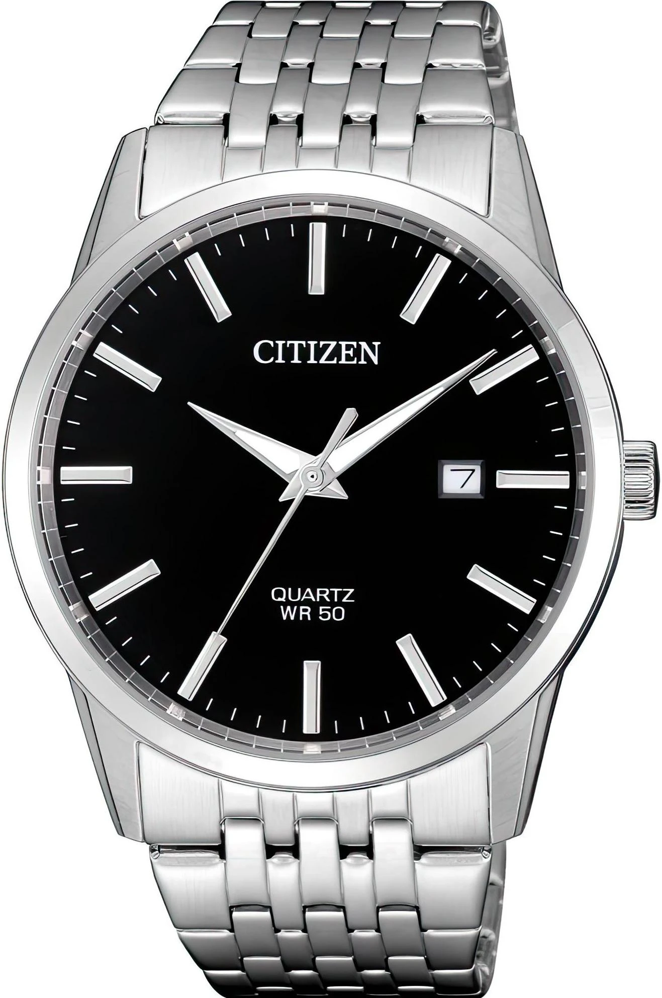 Мужские наручные часы Citizen Quartz BI5000-87E. Точный кварцевый механизм с аналоговой индикацией. Корпус изготовлен из высококачественной нержавеющей стали 316L с высокими антикоррозийными свойствами. На стрелки и отметки нанесен светонакопительный состав, благодаря этому считывать информацию с циферблата возможно и в темноте. На циферблате отображается текущее число месяца. Браслет из нержавеющей стали. Прочное, устойчивое к царапинам минеральное стекло защищает часы от повреждений. Часы являются водонепроницаемыми до 5 Бар. Цвет корпуса: Серебристый. Цвет циферблата: Черный. Ширина (с заводной головкой): 39мм. Толщина: 8мм. Гарантия: 2 года.