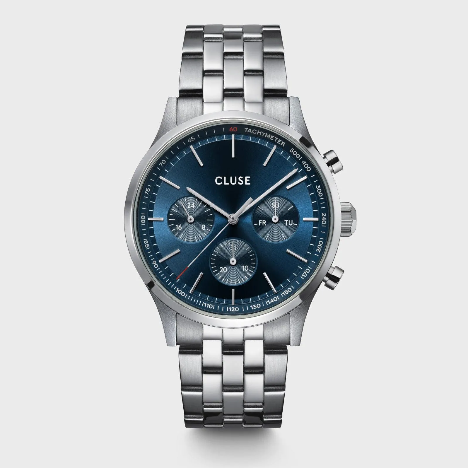 Мужские часы Anth?or Multifunction сочетают в себе элегантный дизайн и многофункциональность. Модель оснащена 42-миллиметровым корпусом из матовой и полированной нержавеющей стали серебристого цвета. Циферблат синего цвета с узором "солнечные лучи" дополнен тремя дополнительными циферблатами, которые отображают день недели, часы и дату. Цельный серебристый браслет из нержавеющей стали шириной 22 мм гармонично сочетается с корпусом. Часы отличаются универсальным дизайном, который подходит для любого стиля одежды.