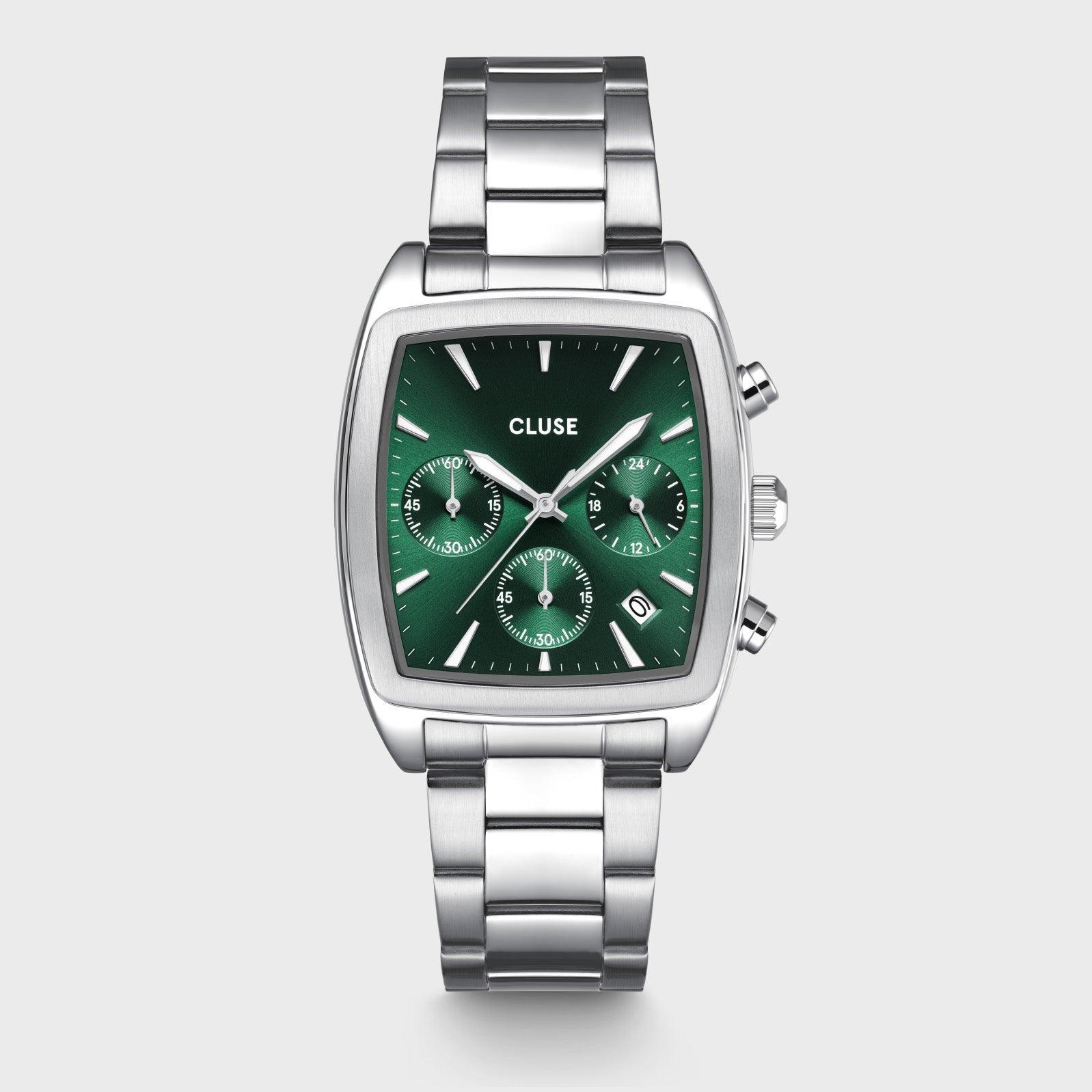Мужские часы Quartaut Chrono — это уникальное сочетание надежности и роскоши. Модель отличается обтекаемым корпусом бочкообразной формы серебристого цвета, браслетом из нержавеющей стали с трехзвенной конструкцией и зеленым циферблатом с тремя дополнительными шкалами. Идеально проработанная форма обеспечивает непревзойденный комфорт и стиль.