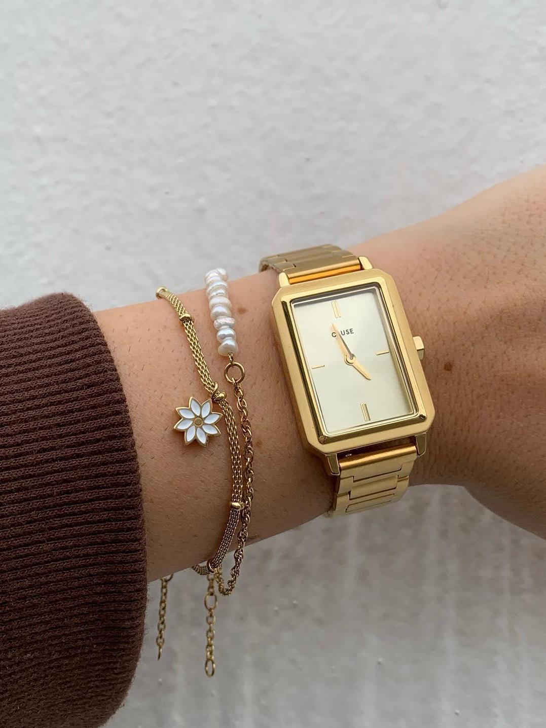 <b>Женские наручные часы Cluse Fluette CW11507</b>. Точный кварцевый механизм с аналоговой индикацией. Корпус изготовлен из высококачественной нержавеющей стали 316L с высокими антикоррозийными свойствами. Браслет из нержавеющей стали. Прочное, устойчивое к царапинам минеральное стекло защищает часы от повреждений. Часы являются водонепроницаемыми до 3 Бар. Цвет корпуса: Желтое золото. Цвет циферблата: Золотистый. Ширина (с заводной головкой): 14мм. Толщина: 7мм. Гарантия: 2 года.