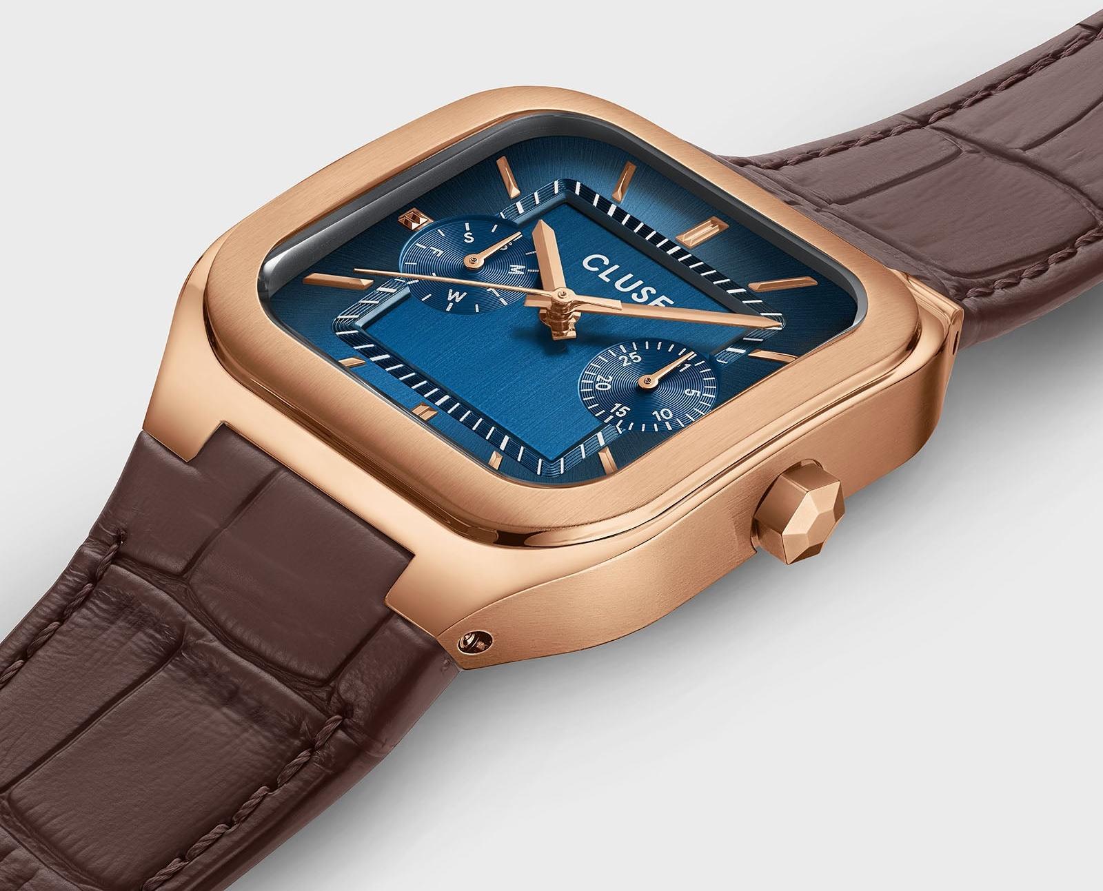 . Точный кварцевый механизм с аналоговой индикацией. В отличие от механических часов, не требуют завода и работают от батареи, показывая отклонение всего несколько секунд в месяц. Ремешок изготовлен из кожи. Гибкость такого ремешка позволяет точно регулировать посадку часов на руке. Корпус изготовлен из высококачественной нержавеющей стали 316L с высокими антикоррозийными свойствами. Прочное, устойчивое к царапинам минеральное стекло защищает часы от повреждений. Часы являются водонепроницаемыми до 5 Бар. Цвет корпуса: Розовое золото. Цвет циферблата: Синий. Высота (с ушками): 41 мм. Толщина: 9 мм. Гарантия: 2 года.