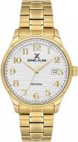 Мужские наручные часы Daniel Klein Arcadia 14050-4. Точный кварцевый механизм с аналоговой индикацией. В отличие от механических часов, не требуют завода и работают от батареи, показывая отклонение всего несколько секунд в месяц. Браслет из нержавеющей стали обладает высокой прочностью и износостойкостью, обеспечивая долговечность даже при активной эксплуатации. Материал устойчив к коррозии и сохраняет свой внешний вид надолго. Корпус изготовлен из высококачественной часовой латуни с высокими антикоррозийными свойствами. Прочное, устойчивое к царапинам минеральное стекло защищает часы от повреждений. Часы являются водонепроницаемыми до 5 Бар. Цвет корпуса: Желтое золото. Цвет циферблата: Белый. Высота (с ушками): 41 мм. Толщина: 11 мм. Гарантия: 1 год.