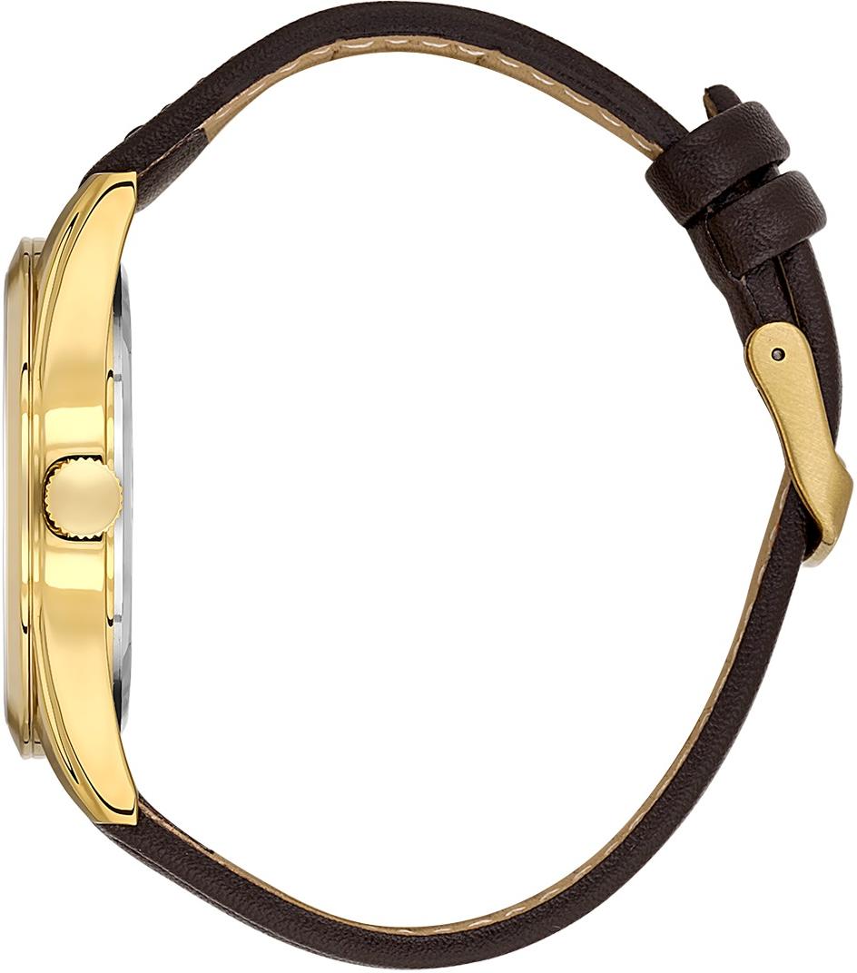 . Точный кварцевый механизм с аналоговой индикацией. В отличие от механических часов, не требуют завода и работают от батареи, показывая отклонение всего несколько секунд в месяц. Ремешок изготовлен из кожи. Гибкость такого ремешка позволяет точно регулировать посадку часов на руке. Корпус изготовлен из высококачественной часовой латуни с высокими антикоррозийными свойствами. Прочное, устойчивое к царапинам минеральное стекло защищает часы от повреждений. Часы являются водонепроницаемыми до 5 Бар. Цвет корпуса: Желтое золото. Цвет циферблата: Серебристый. Высота (с ушками): 50.5 мм. Толщина: 10 мм. Гарантия: 1 год.
