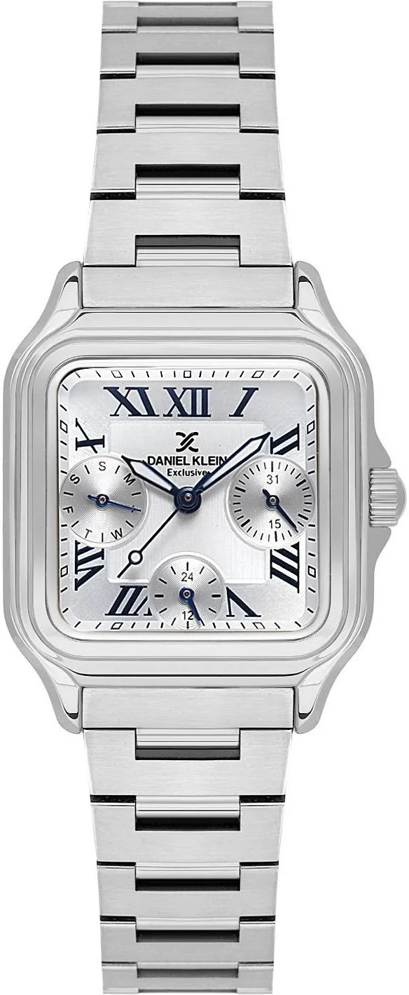 Женские наручные часы Daniel Klein Exclusive 14042-1. Точный кварцевый механизм с аналоговой индикацией. В отличие от механических часов, не требуют завода и работают от батареи, показывая отклонение всего несколько секунд в месяц. На стрелки и отметки нанесен светонакопительный состав, благодаря этому считывать информацию с циферблата возможно и в темноте. Браслет из нержавеющей стали обладает высокой прочностью и износостойкостью, обеспечивая долговечность даже при активной эксплуатации. Материал устойчив к коррозии и сохраняет свой внешний вид надолго. Отображение времени возможно в 12-часовом или 24-часовом формате. Корпус изготовлен из высококачественной часовой латуни с высокими антикоррозийными свойствами. Прочное, устойчивое к царапинам минеральное стекло защищает часы от повреждений. Часы являются водонепроницаемыми до 3 Бар. Цвет корпуса: Серебристый. Цвет циферблата: Серебристый. Высота (с ушками): 28 мм. Толщина: 10 мм. Гарантия: 1 год.