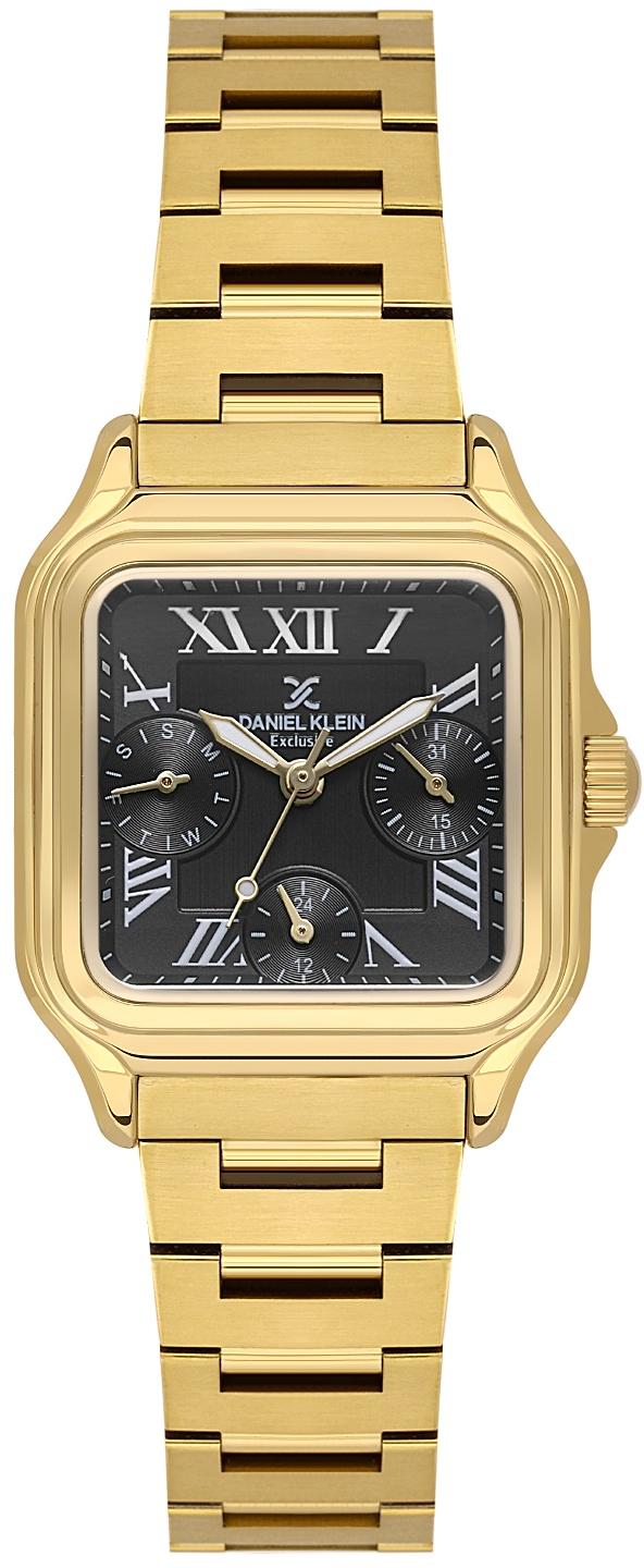 Женские наручные часы Daniel Klein Exclusive 14042-2. Точный кварцевый механизм с аналоговой индикацией. В отличие от механических часов, не требуют завода и работают от батареи, показывая отклонение всего несколько секунд в месяц. На стрелки и отметки нанесен светонакопительный состав, благодаря этому считывать информацию с циферблата возможно и в темноте. Браслет из нержавеющей стали обладает высокой прочностью и износостойкостью, обеспечивая долговечность даже при активной эксплуатации. Материал устойчив к коррозии и сохраняет свой внешний вид надолго. Отображение времени возможно в 12-часовом или 24-часовом формате. Корпус изготовлен из высококачественной часовой латуни с высокими антикоррозийными свойствами. Прочное, устойчивое к царапинам минеральное стекло защищает часы от повреждений. Часы являются водонепроницаемыми до 3 Бар. Цвет корпуса: Желтое золото. Цвет циферблата: Черный. Высота (с ушками): 28 мм. Толщина: 10 мм. Гарантия: 1 год.
