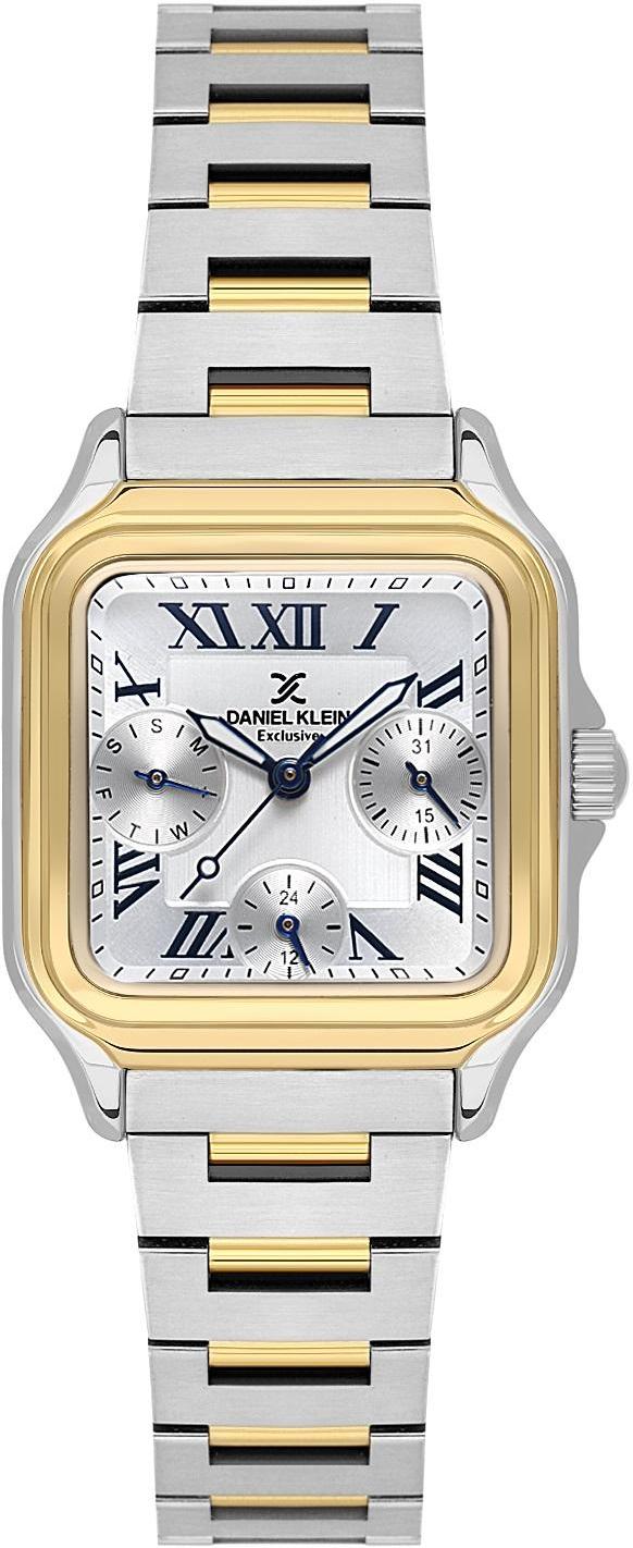 Женские наручные часы Daniel Klein Exclusive 14042-4. Точный кварцевый механизм с аналоговой индикацией. В отличие от механических часов, не требуют завода и работают от батареи, показывая отклонение всего несколько секунд в месяц. На стрелки и отметки нанесен светонакопительный состав, благодаря этому считывать информацию с циферблата возможно и в темноте. Браслет из нержавеющей стали обладает высокой прочностью и износостойкостью, обеспечивая долговечность даже при активной эксплуатации. Материал устойчив к коррозии и сохраняет свой внешний вид надолго. Отображение времени возможно в 12-часовом или 24-часовом формате. Корпус изготовлен из высококачественной часовой латуни с высокими антикоррозийными свойствами. Прочное, устойчивое к царапинам минеральное стекло защищает часы от повреждений. Часы являются водонепроницаемыми до 3 Бар. Цвет корпуса: Серебристый. Цвет циферблата: Серебристый. Высота (с ушками): 35 мм. Толщина: 10 мм. Гарантия: 1 год.