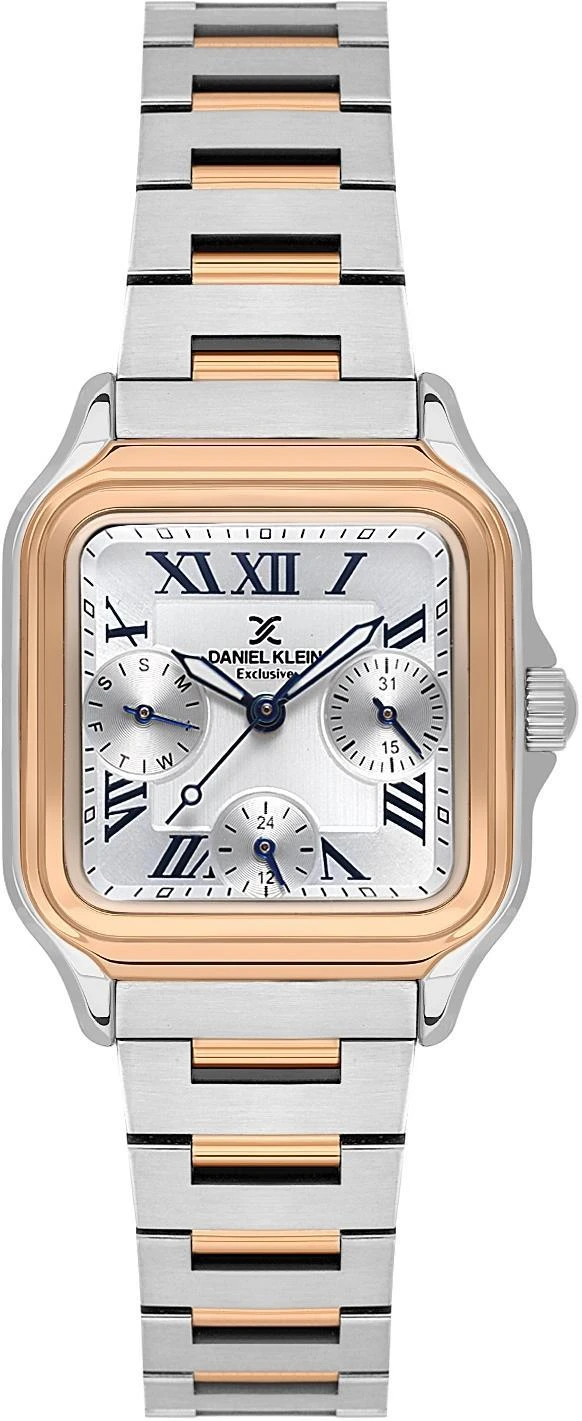 Женские наручные часы Daniel Klein Exclusive 14042-6. Точный кварцевый механизм с аналоговой индикацией. В отличие от механических часов, не требуют завода и работают от батареи, показывая отклонение всего несколько секунд в месяц. На стрелки и отметки нанесен светонакопительный состав, благодаря этому считывать информацию с циферблата возможно и в темноте. Браслет из нержавеющей стали обладает высокой прочностью и износостойкостью, обеспечивая долговечность даже при активной эксплуатации. Материал устойчив к коррозии и сохраняет свой внешний вид надолго. Отображение времени возможно в 12-часовом или 24-часовом формате. Корпус изготовлен из высококачественной часовой латуни с высокими антикоррозийными свойствами. Прочное, устойчивое к царапинам минеральное стекло защищает часы от повреждений. Часы являются водонепроницаемыми до 3 Бар. Цвет корпуса: Серебристый. Цвет циферблата: Серебристый. Высота (с ушками): 35 мм. Толщина: 10 мм. Гарантия: 1 год.