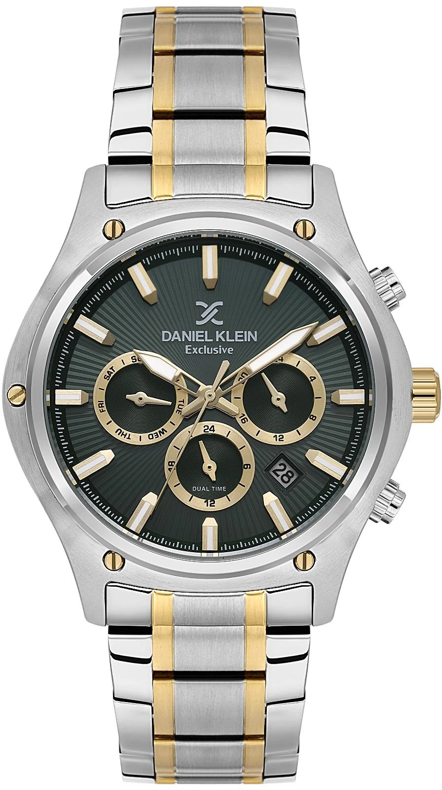 Мужские наручные часы Daniel Klein Exclusive 14057-5. Точный кварцевый механизм с аналоговой индикацией. В отличие от механических часов, не требуют завода и работают от батареи, показывая отклонение всего несколько секунд в месяц. На стрелки и отметки нанесен светонакопительный состав, благодаря этому считывать информацию с циферблата возможно и в темноте. Браслет из нержавеющей стали обладает высокой прочностью и износостойкостью, обеспечивая долговечность даже при активной эксплуатации. Материал устойчив к коррозии и сохраняет свой внешний вид надолго. Отображение времени возможно в 12-часовом или 24-часовом формате. Корпус изготовлен из высококачественной часовой латуни с высокими антикоррозийными свойствами. Прочное, устойчивое к царапинам минеральное стекло защищает часы от повреждений. Часы являются водонепроницаемыми до 5 Бар. Цвет корпуса: Серебристый. Цвет циферблата: Черный. Высота (с ушками): 50 мм. Толщина: 12 мм. Гарантия: 1 год.