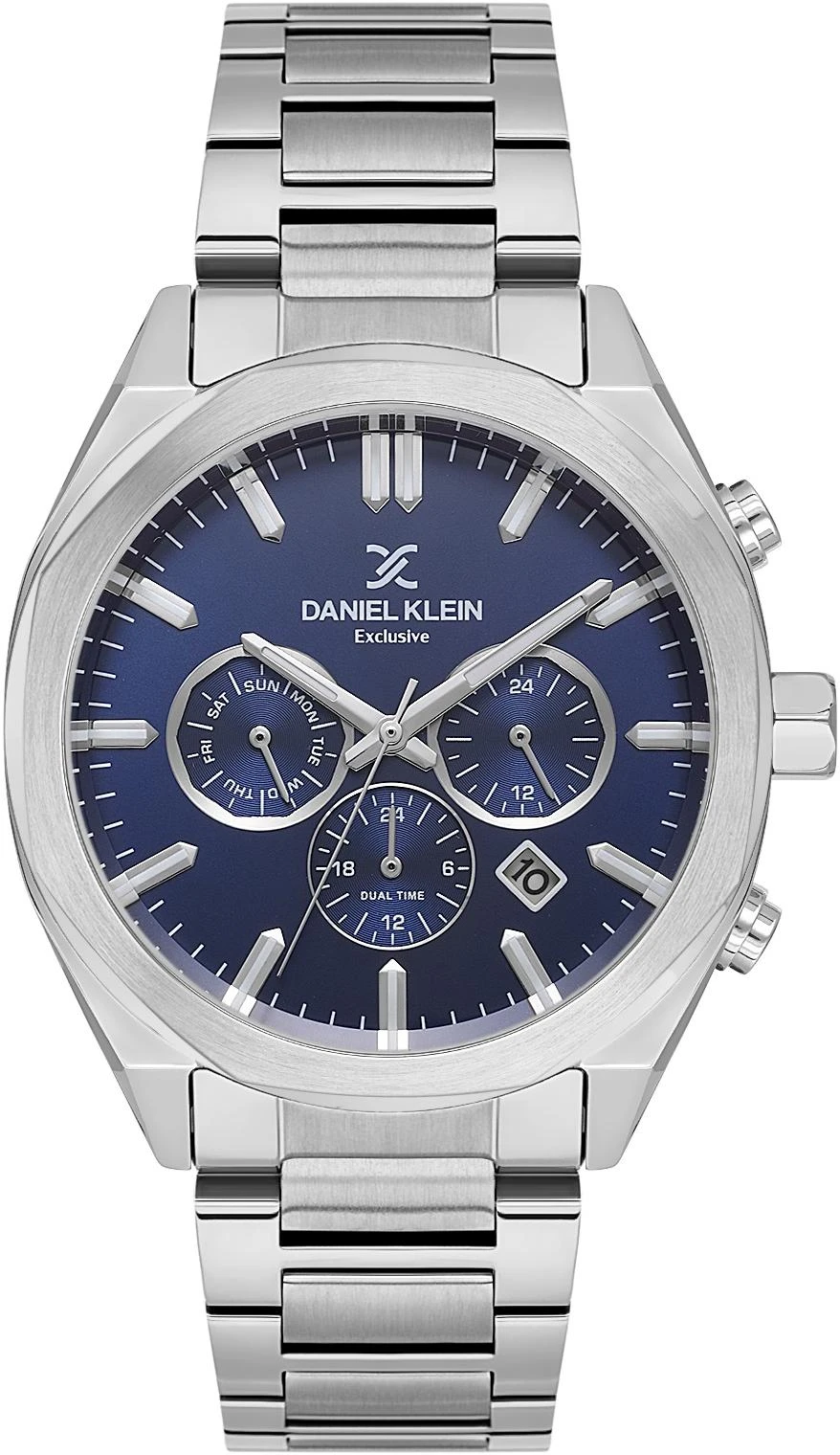 Мужские наручные часы Daniel Klein Exclusive 14064-2. Точный кварцевый механизм с аналоговой индикацией. В отличие от механических часов, не требуют завода и работают от батареи, показывая отклонение всего несколько секунд в месяц. На стрелки и отметки нанесен светонакопительный состав, благодаря этому считывать информацию с циферблата возможно и в темноте. Браслет из нержавеющей стали обладает высокой прочностью и износостойкостью, обеспечивая долговечность даже при активной эксплуатации. Материал устойчив к коррозии и сохраняет свой внешний вид надолго. Отображение времени возможно в 12-часовом или 24-часовом формате. Корпус изготовлен из высококачественной часовой латуни с высокими антикоррозийными свойствами. Прочное, устойчивое к царапинам минеральное стекло защищает часы от повреждений. Часы являются водонепроницаемыми до 5 Бар. Цвет корпуса: Серебристый. Цвет циферблата: Синий. Высота (с ушками): 51 мм. Толщина: 12 мм. Гарантия: 1 год.